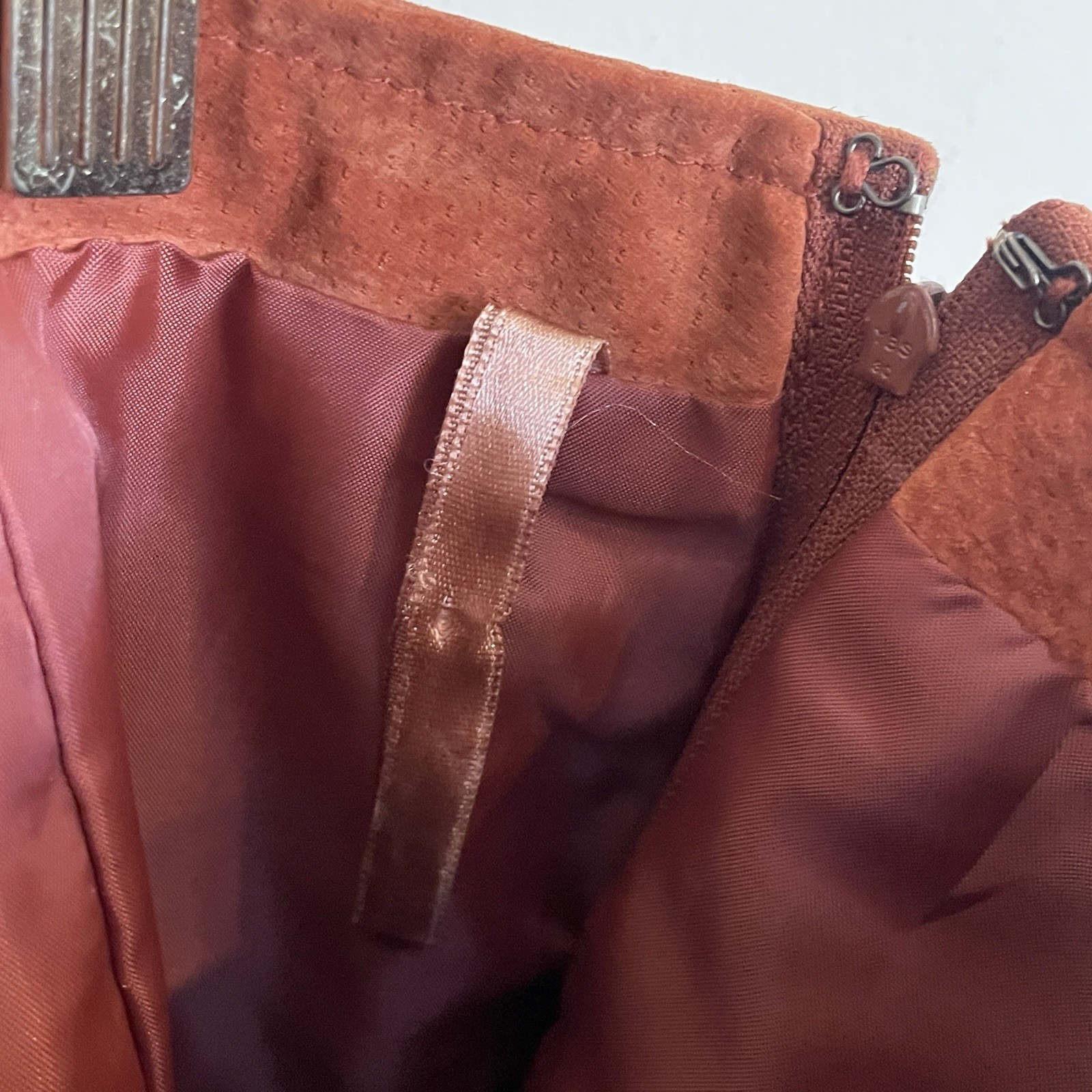 как выглядит VTG 90s Real Leather Suede Skirt Size 14 Rust Orange Waist 38 Festival Boho Mini фото
