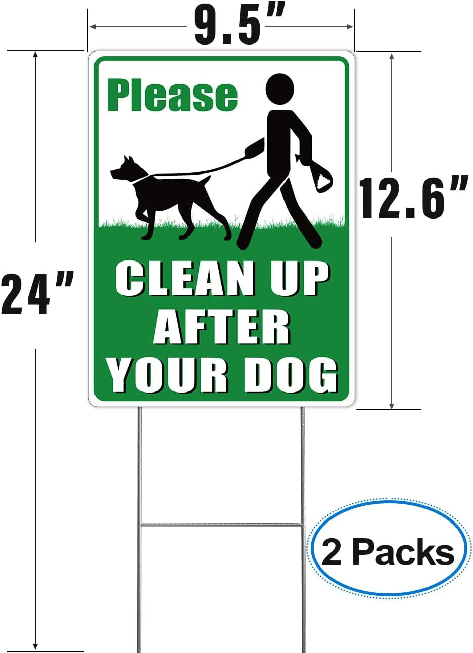 2 Pack Clean Up After Your Dog Lawn Signs 12.6 x 9.5 with Metal Stake