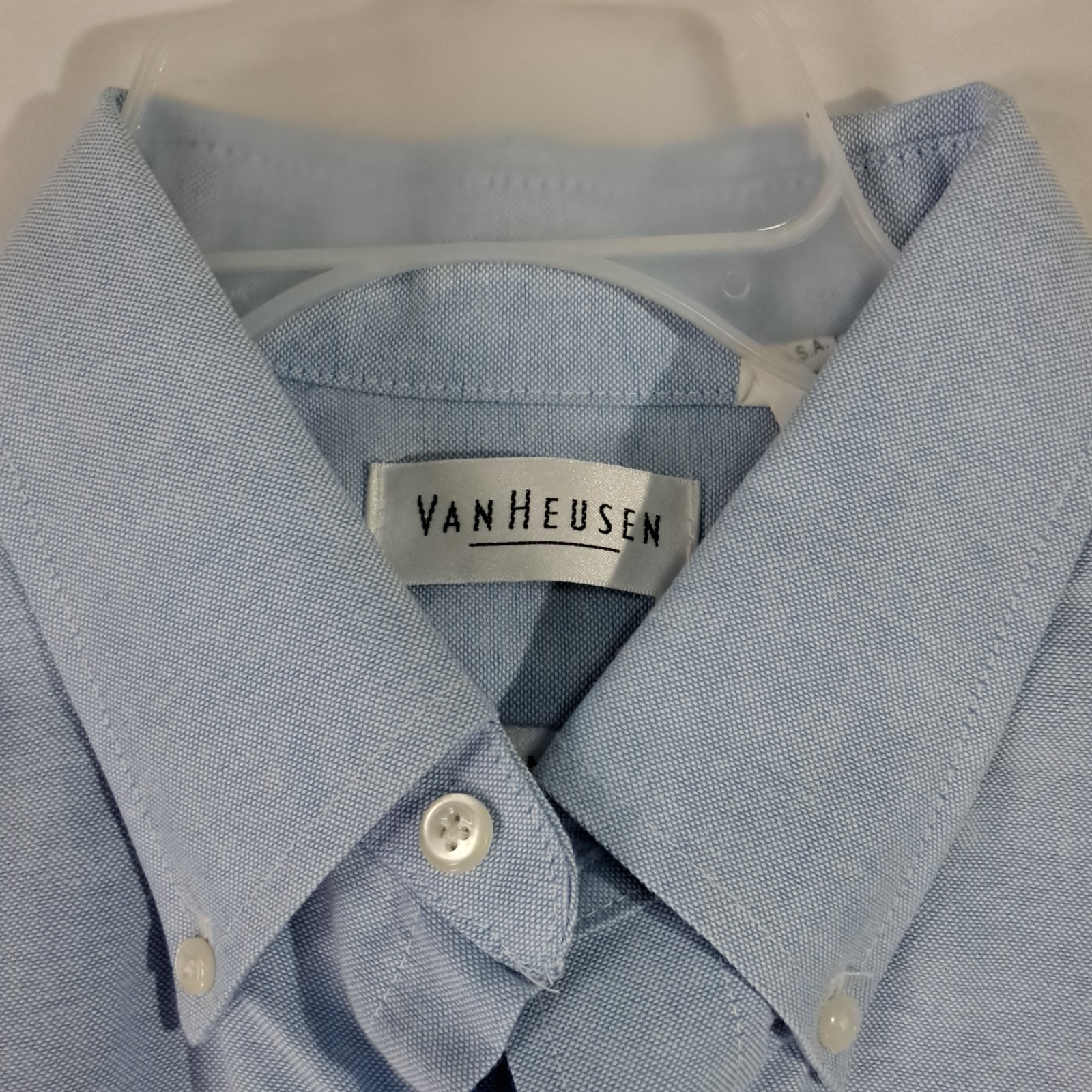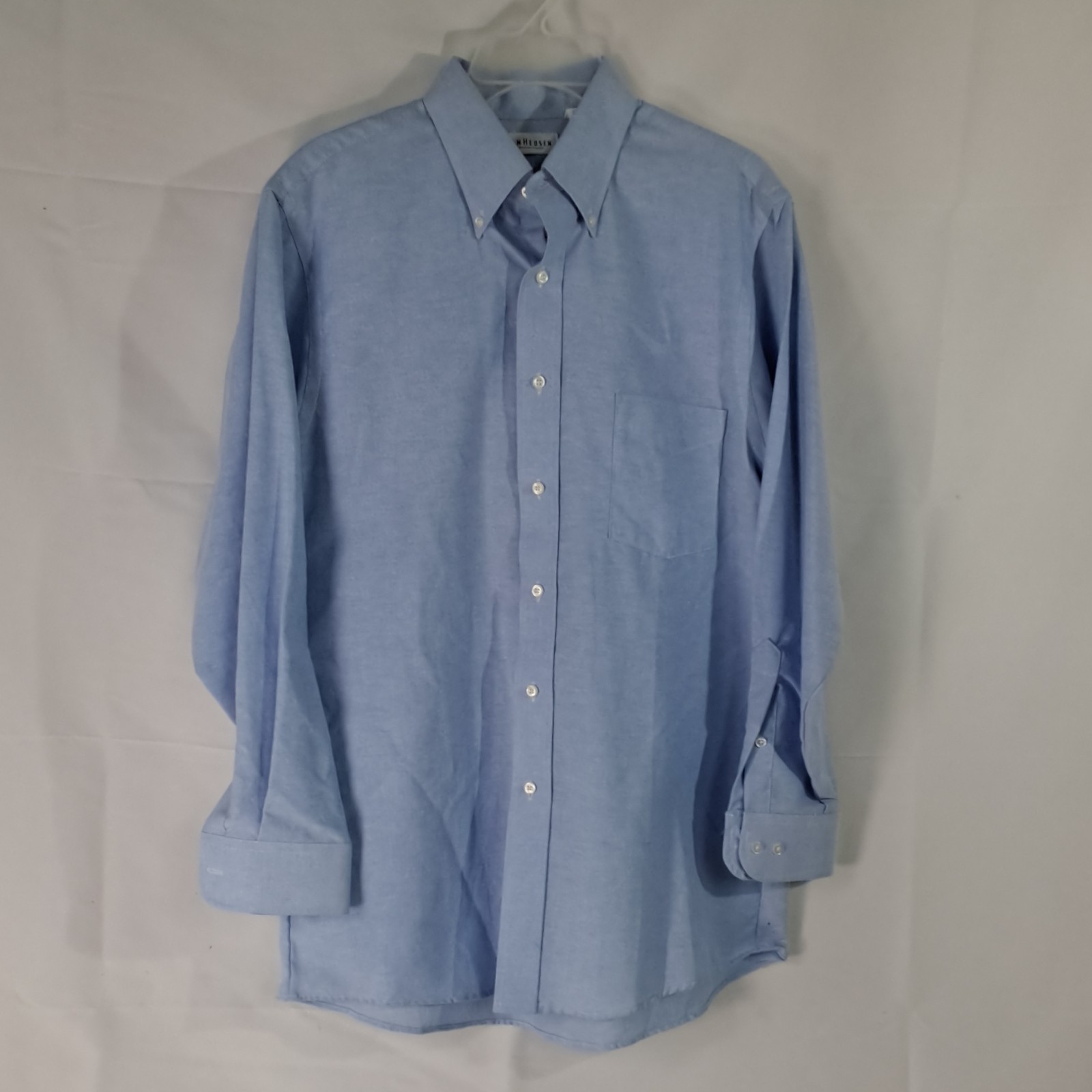 как выглядит Van Heusen Mens Blue Dress Shirt L 34/35 Button-Down Collar Long Sleeve Solid фото