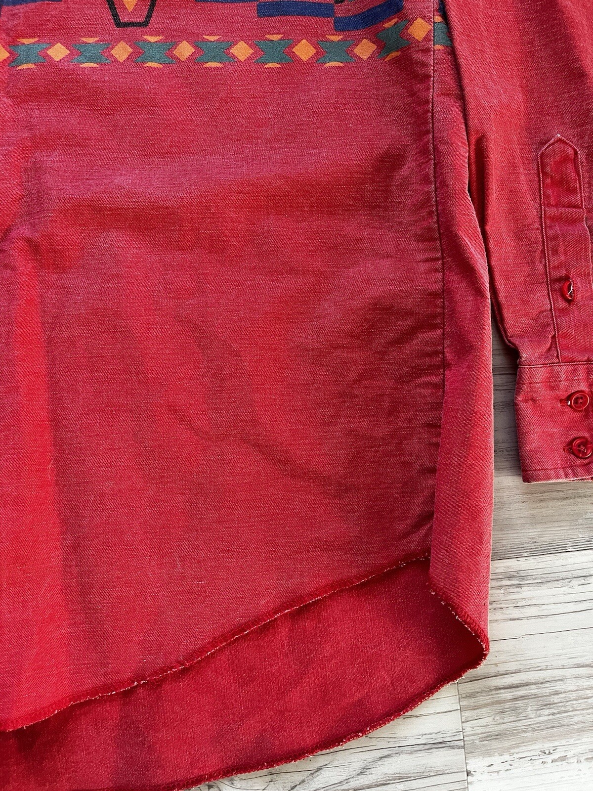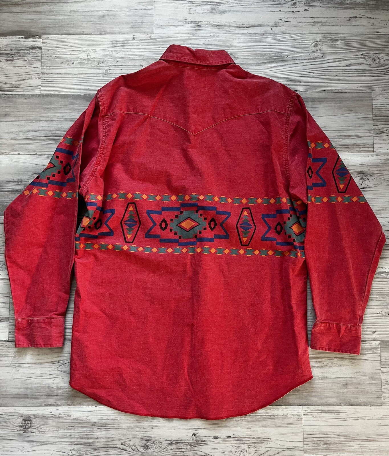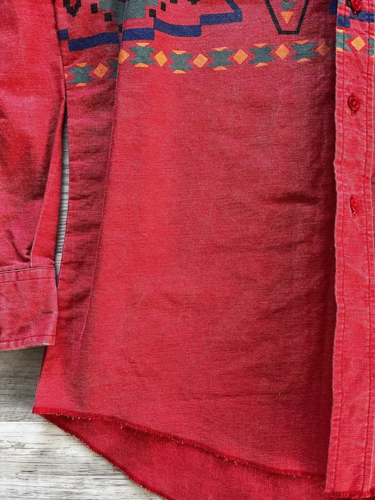 Vtg Wrangler Brushpopper Aztec Button Up Western Rodeo Shirt Red 17-35 USA Made