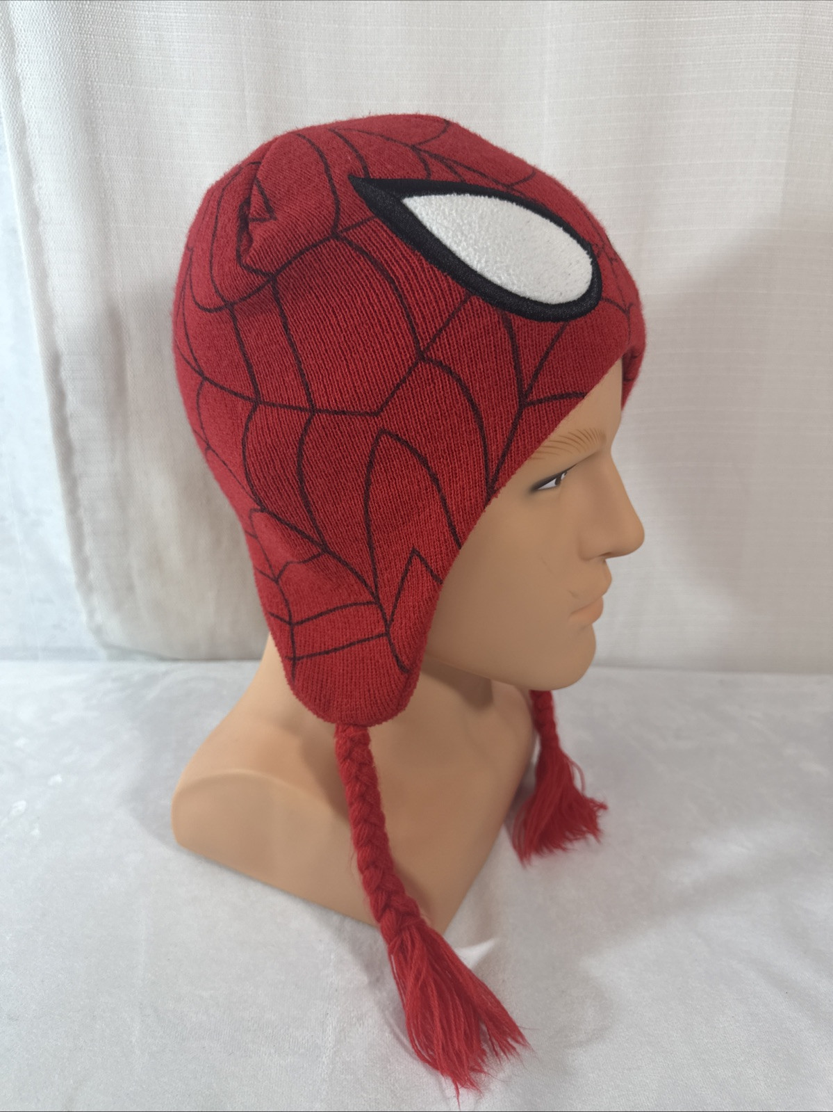 Spider-Man Knit Stocking Hat With Red Braids Marvel Kids OSFM