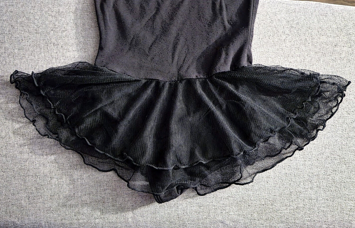 Freestyle by Danskin Bodysuit Black Small 6 / 6x Dance Leotard Mesh Tutu Skirt