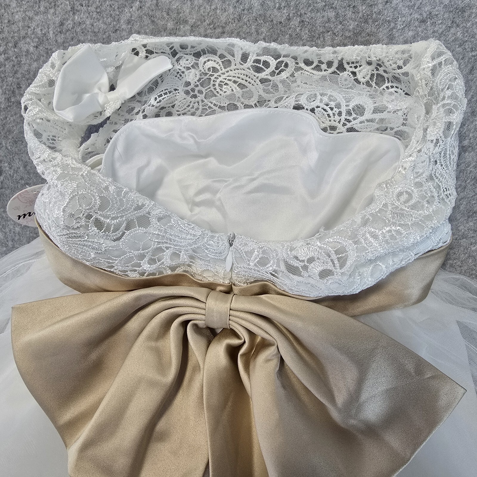 Miama Lace Tulle Flower Girl Dress Kid Size 7 White Champagne Bow Wedding Formal