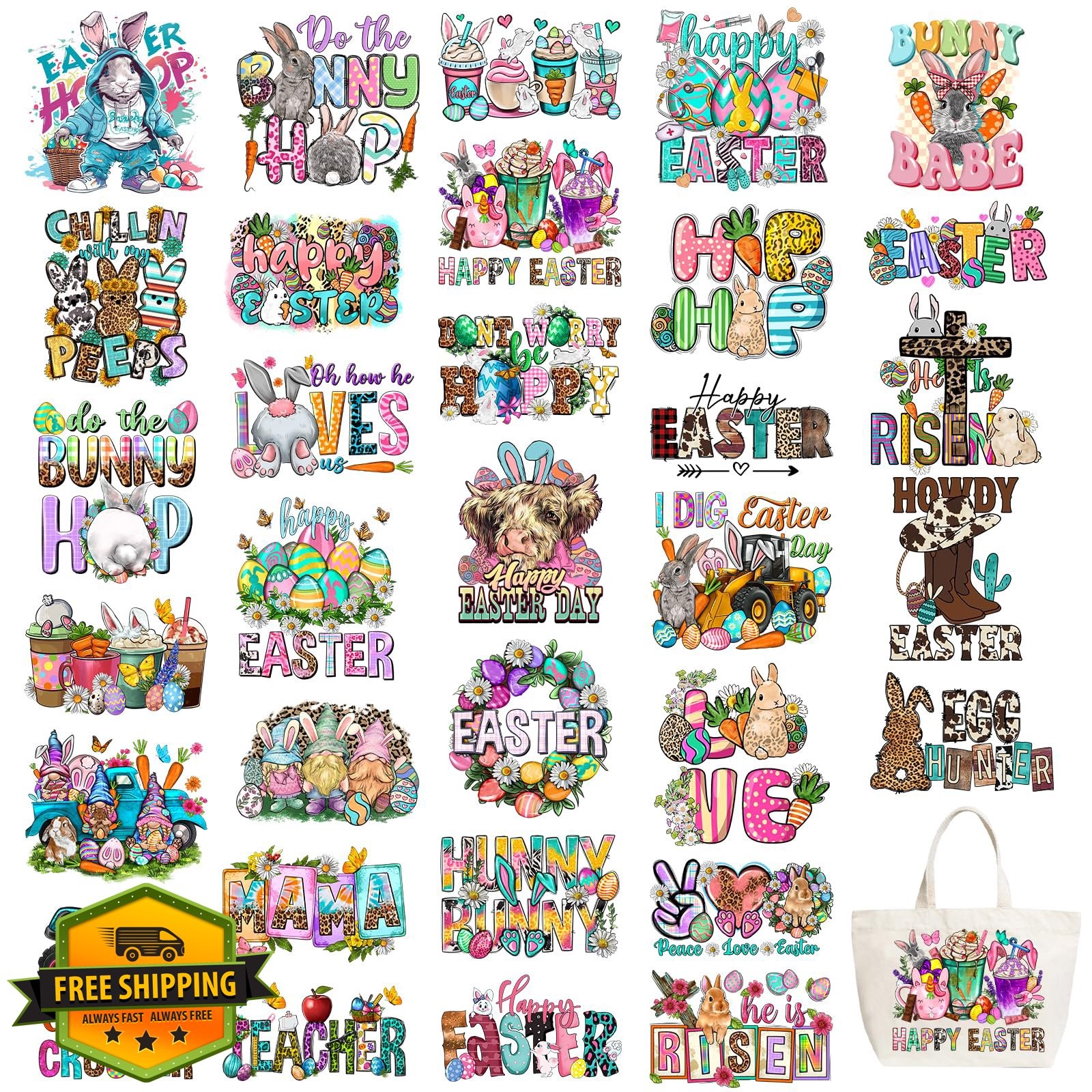 Easter DTF Iron On Transfers 32 Sheets Ready to Press Pastel Decals