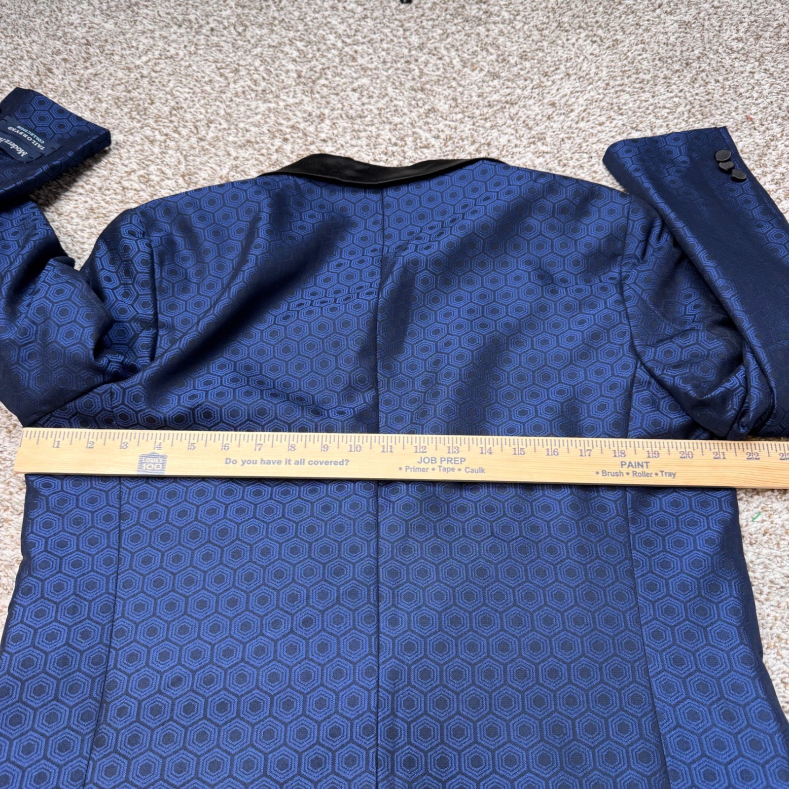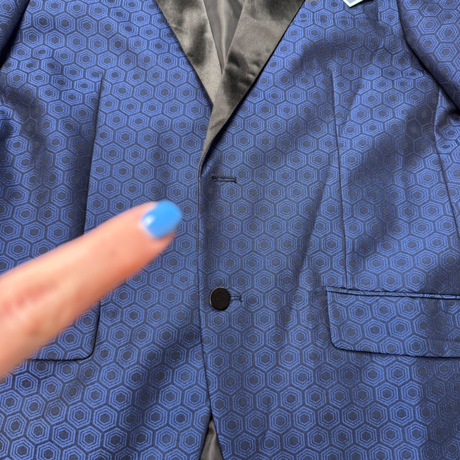 как выглядит Tailorbyrd Mens 42R Blue Hexagonal Pattern Dinner Jacket Tuxedo Blazer New READ фото