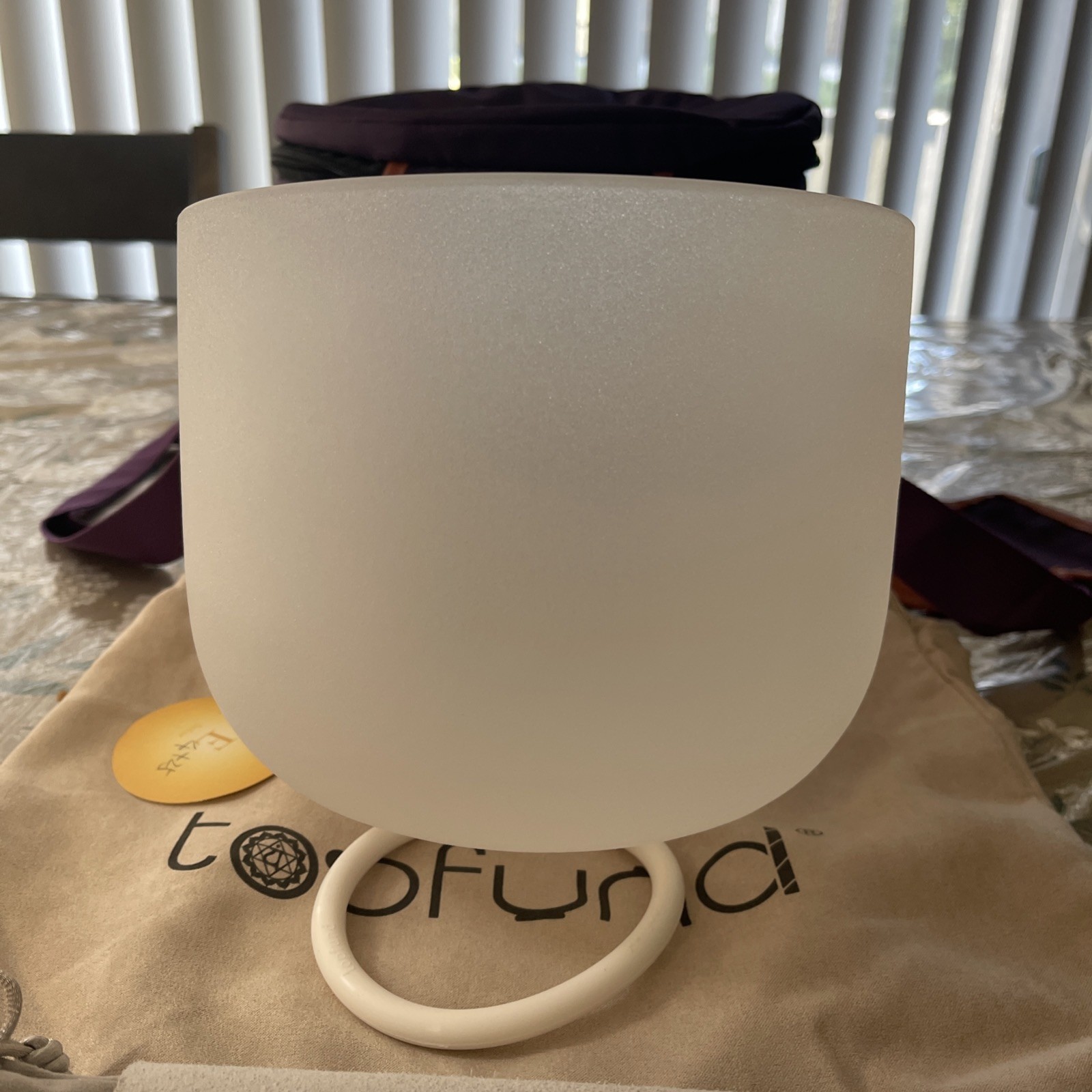 как выглядит TopFund 8" Frosted Crystal Singing Bowl w/ Carrying Case Heart Chakra фото