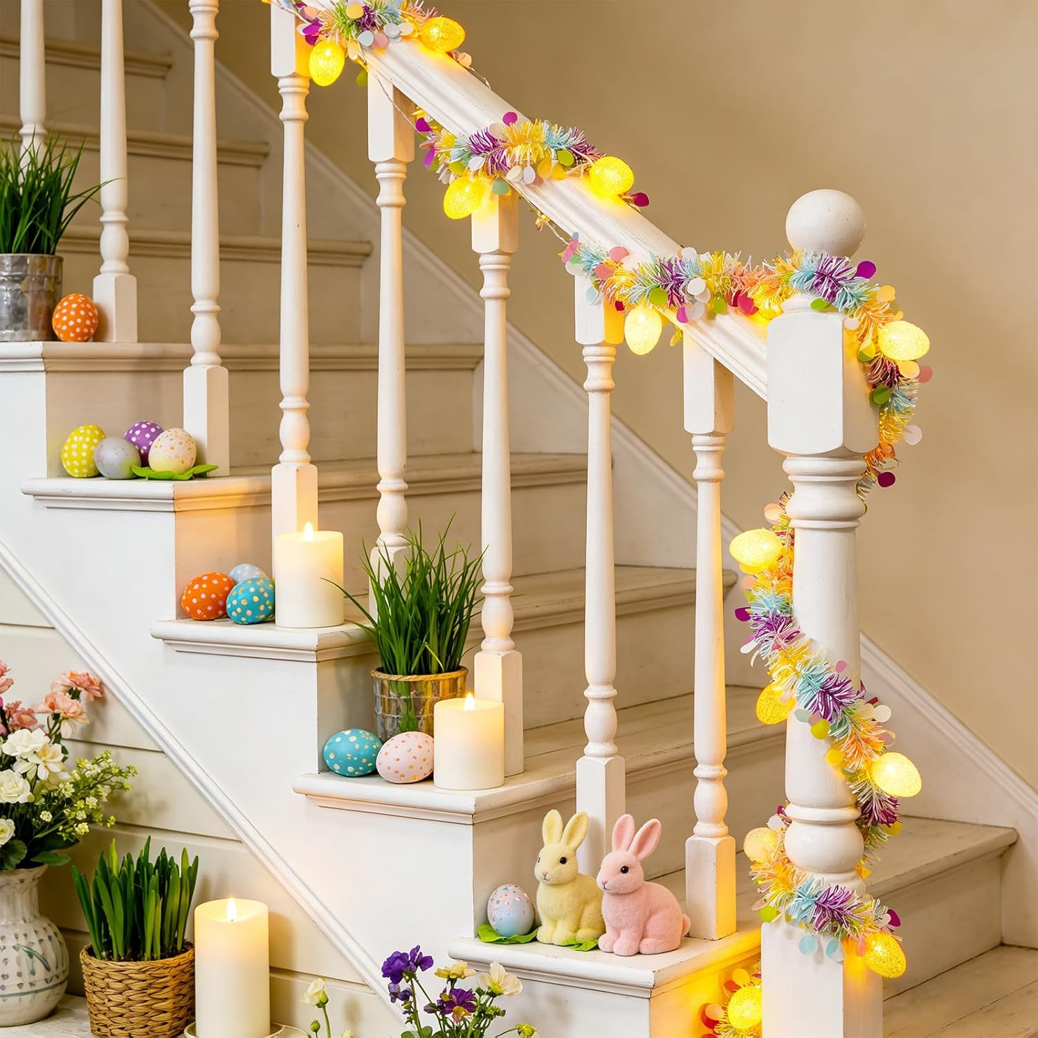 13 Ft Easter Egg Garland with 20 LED Lights,Pastel Easter Tinsel Garland with Eg