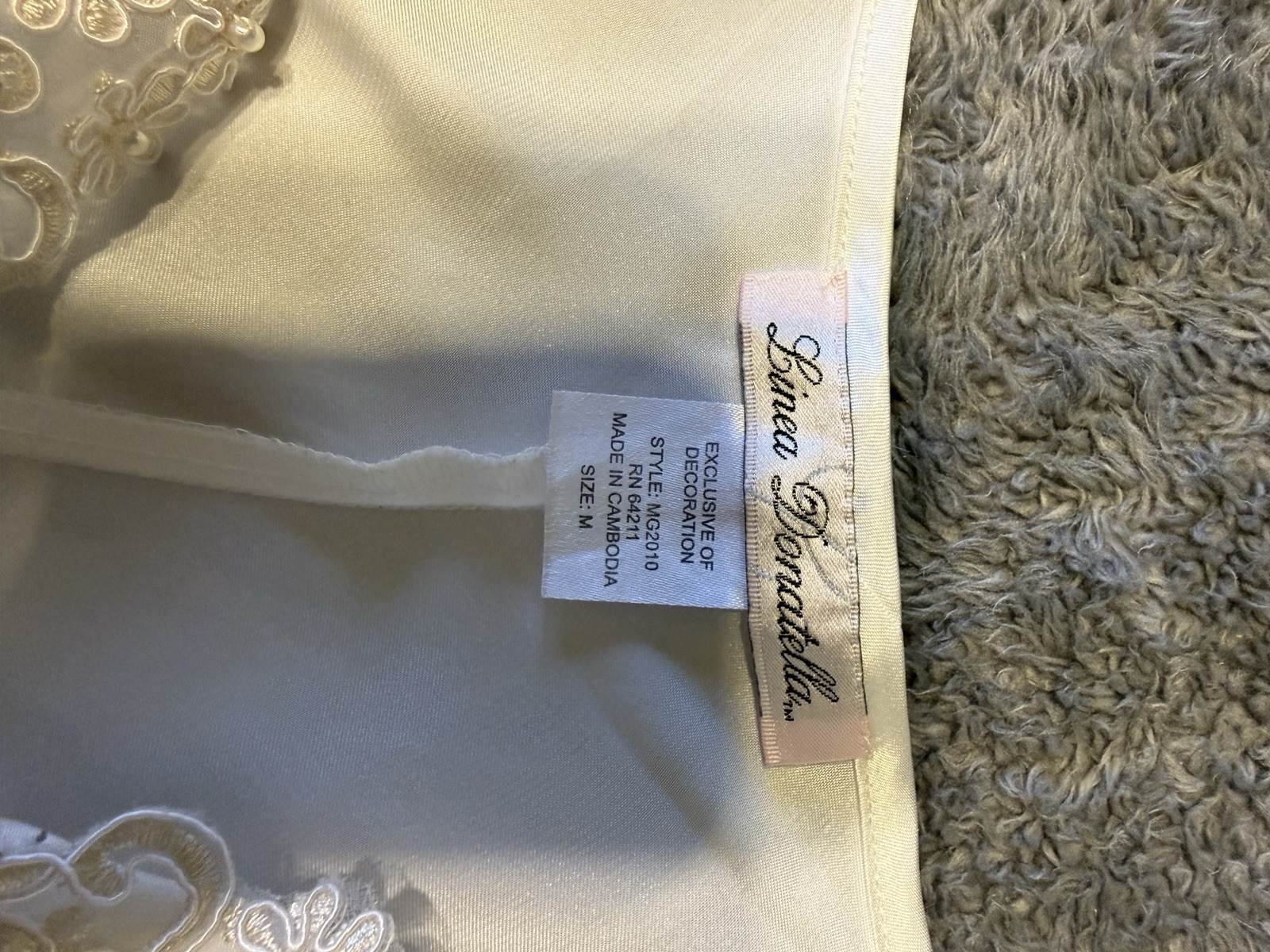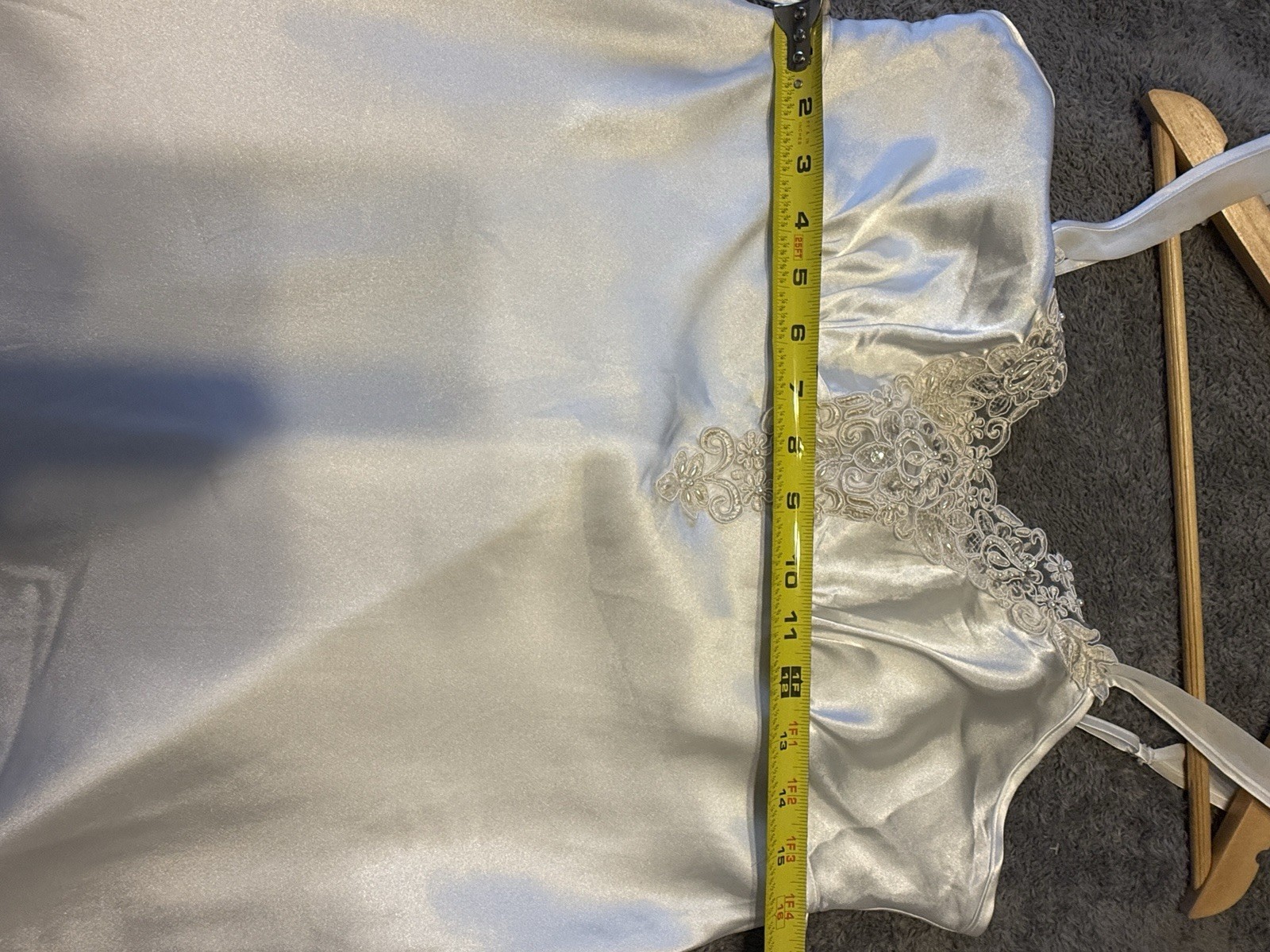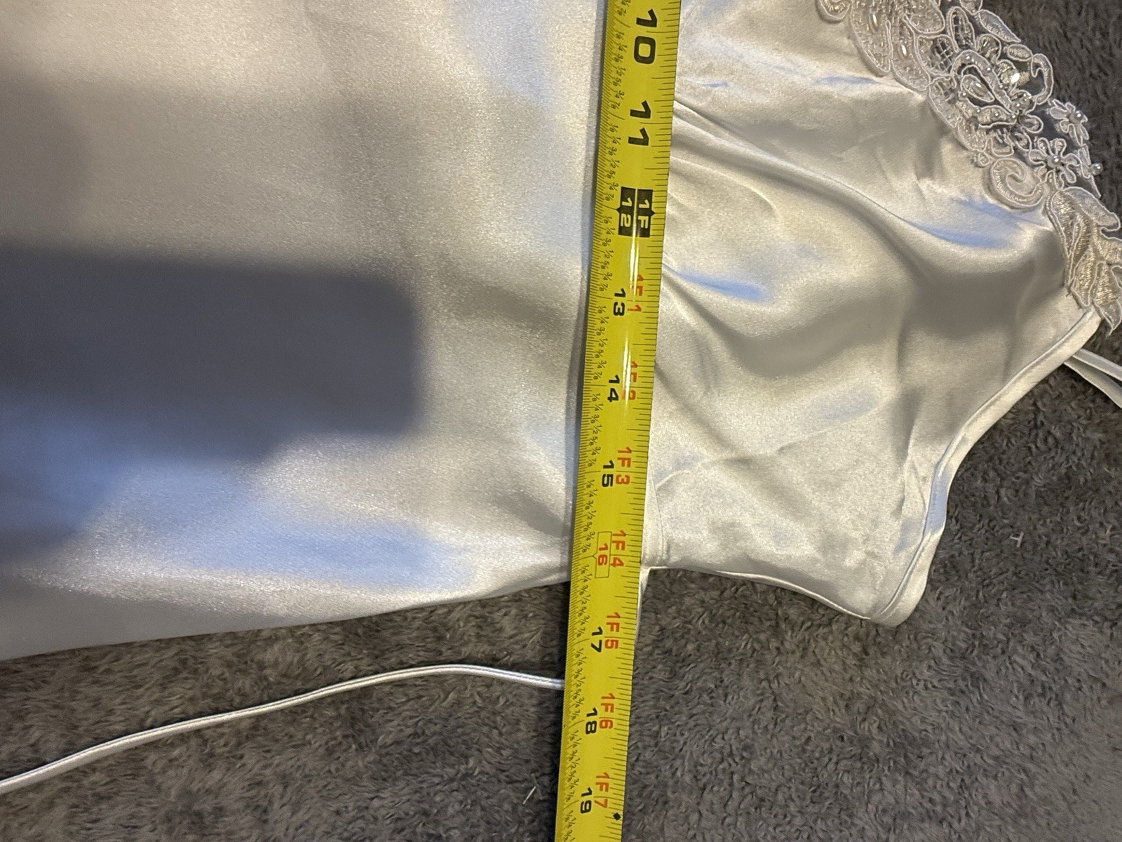 как выглядит Linea Donatella Satin Lace Chemise Nightgown White Slip Dress M фото