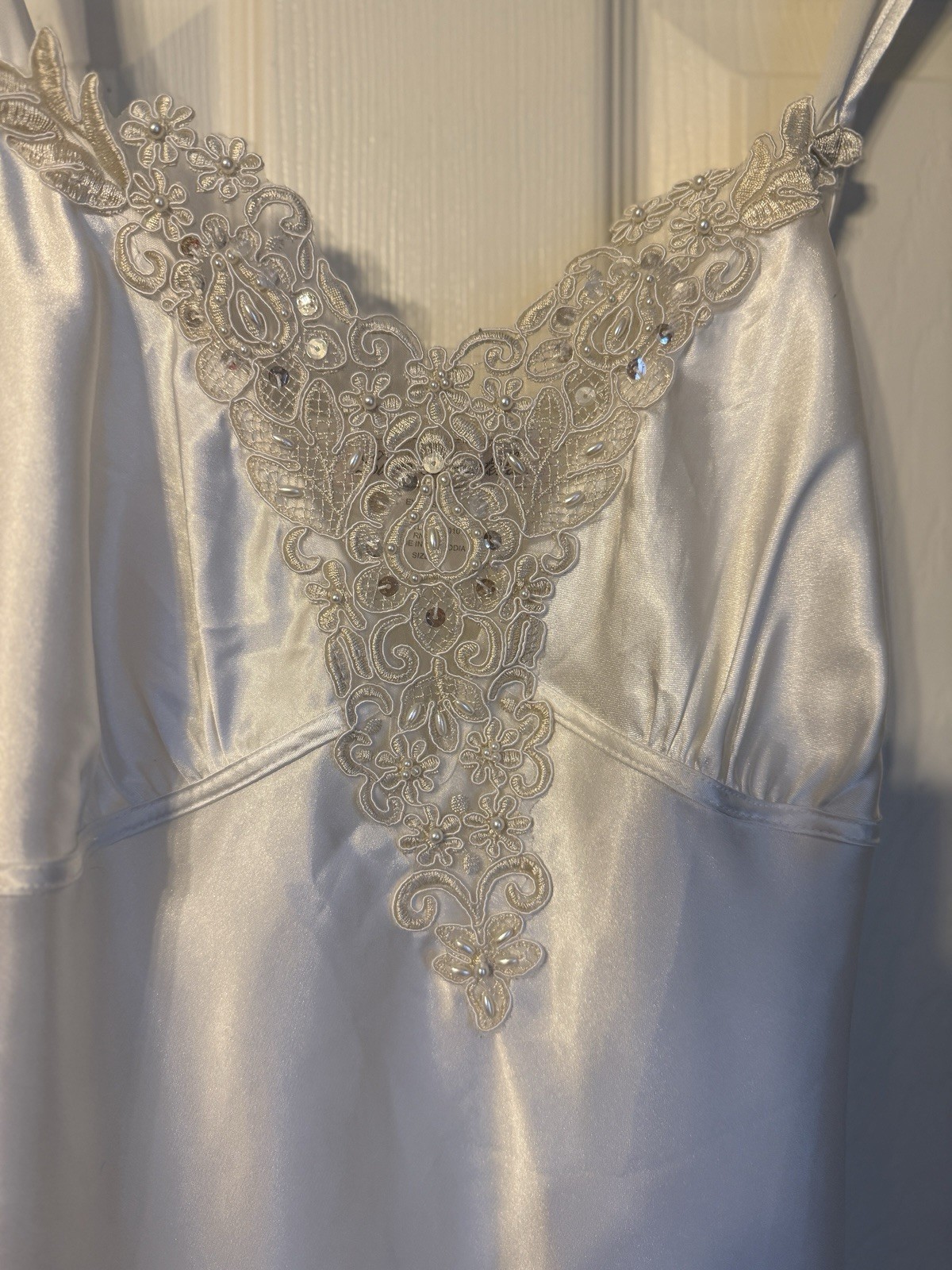 Linea Donatella Satin Lace Chemise Nightgown White Slip Dress M