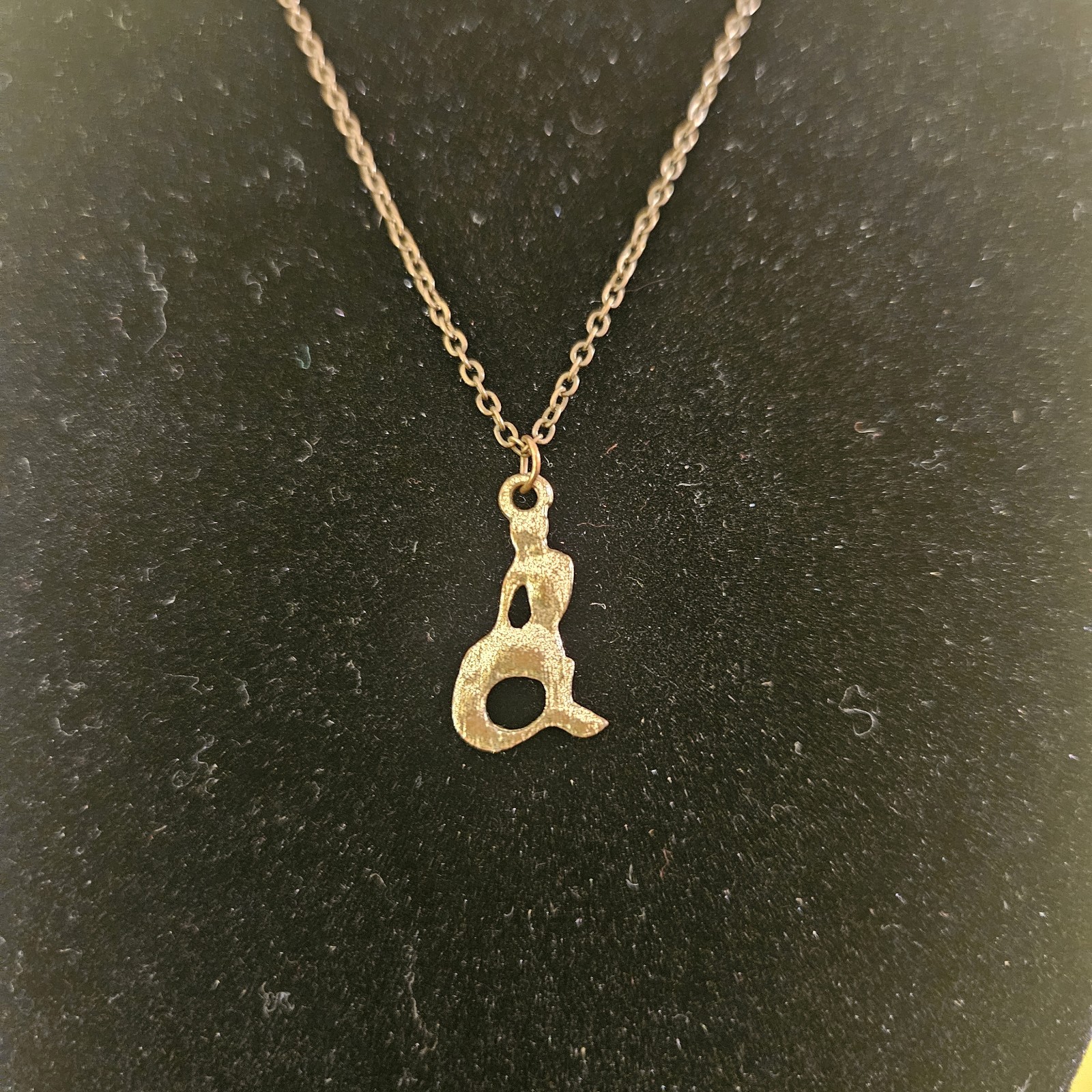Gold Tone Mermaid Charm Necklace With Brown Chain