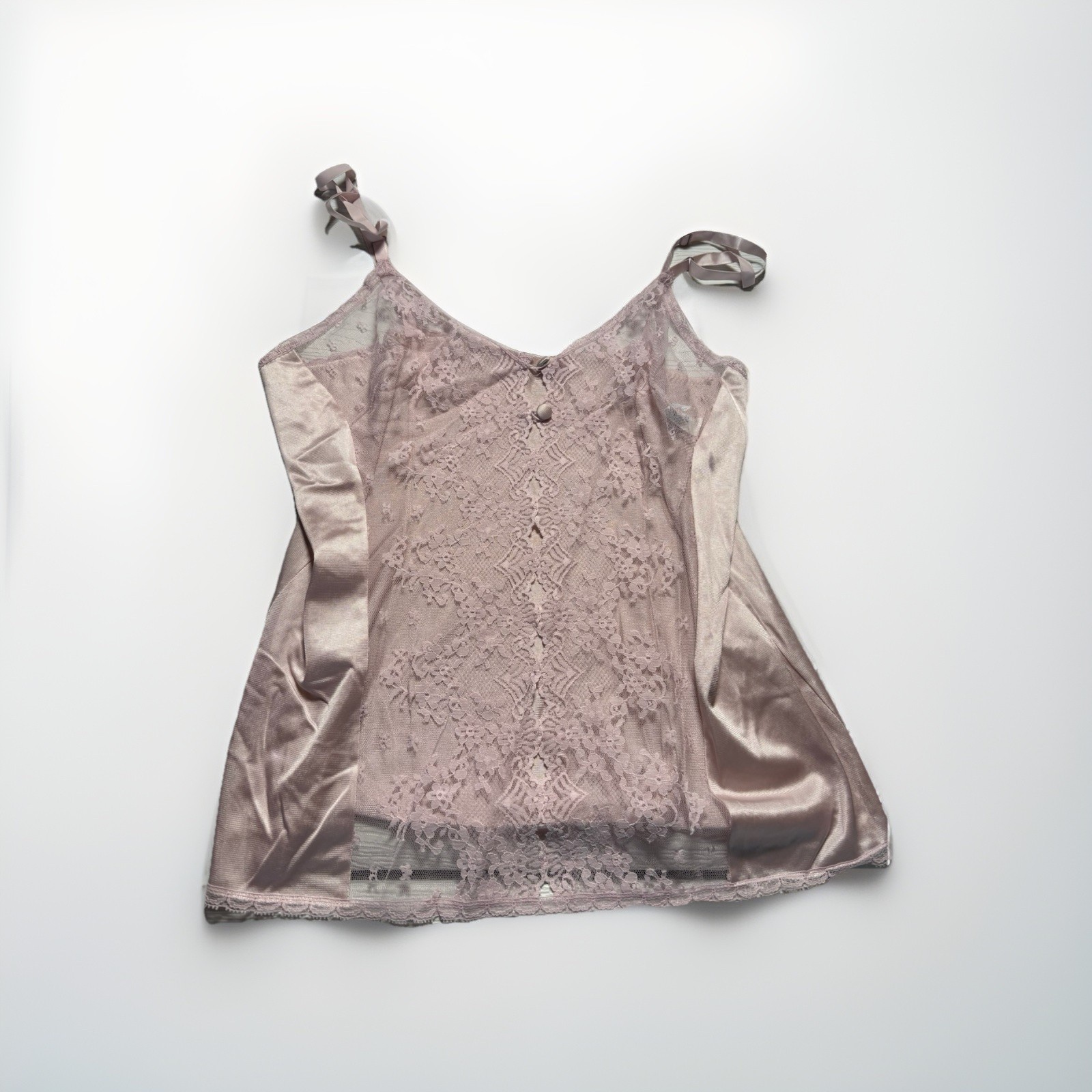 Vintage Vanity Fair Half Slip Top MEDIUM Blush Pink Satin Floral Lace Trim A24