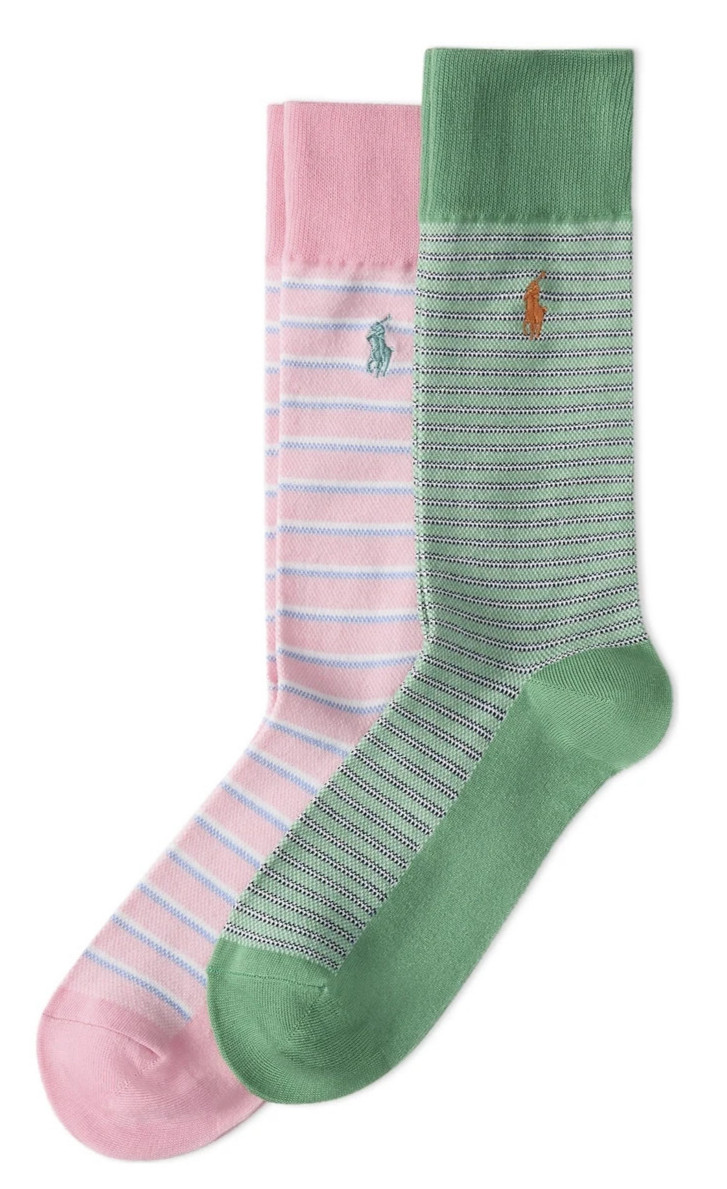 как выглядит NWT Polo Ralph Lauren 2 PAIRS GREEN/PINK STRIPES Trouser Socks Men XL 13-16 PONY фото