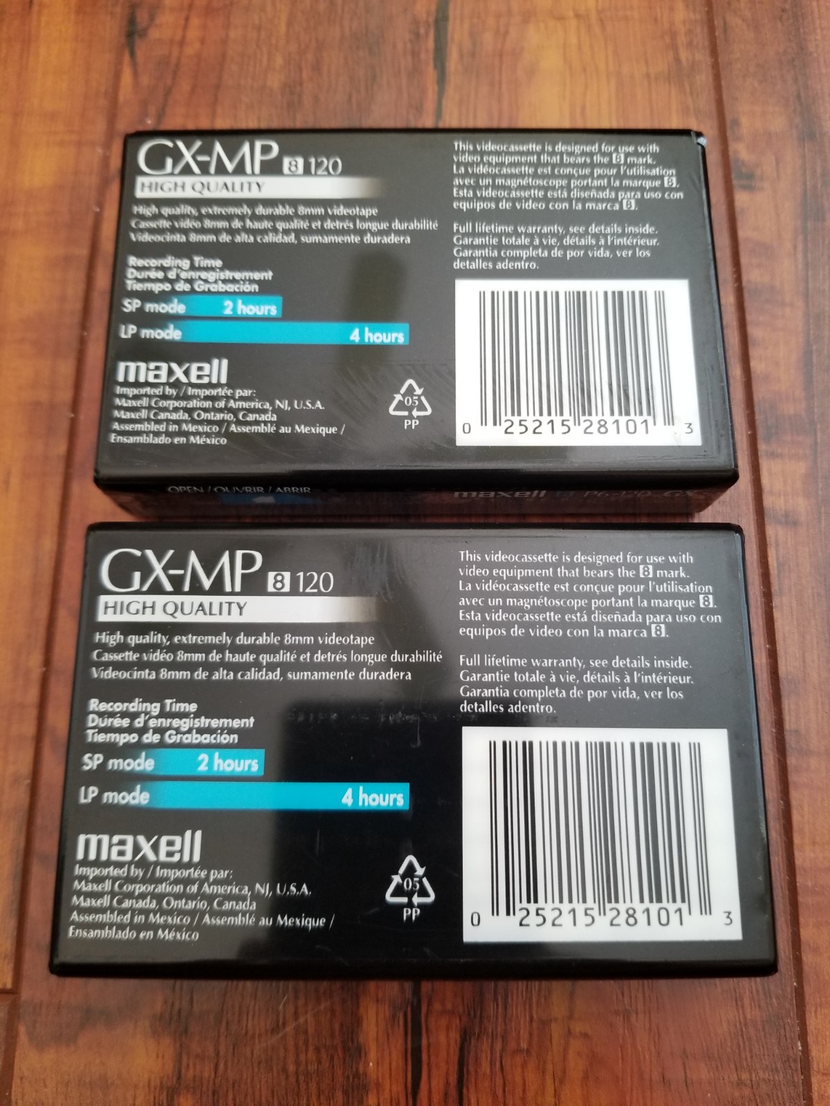 Lot of 2 - Maxell GX-MP High Quality 8mm Blank Camcorder Videotapes - Brand NEW
