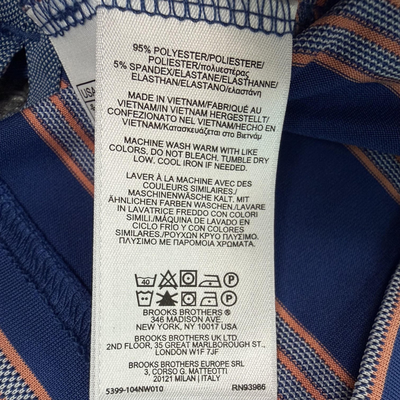 как выглядит Brooks Brothers Polo Shirt Mens Large Blue Stripe Performance Stretch Top фото