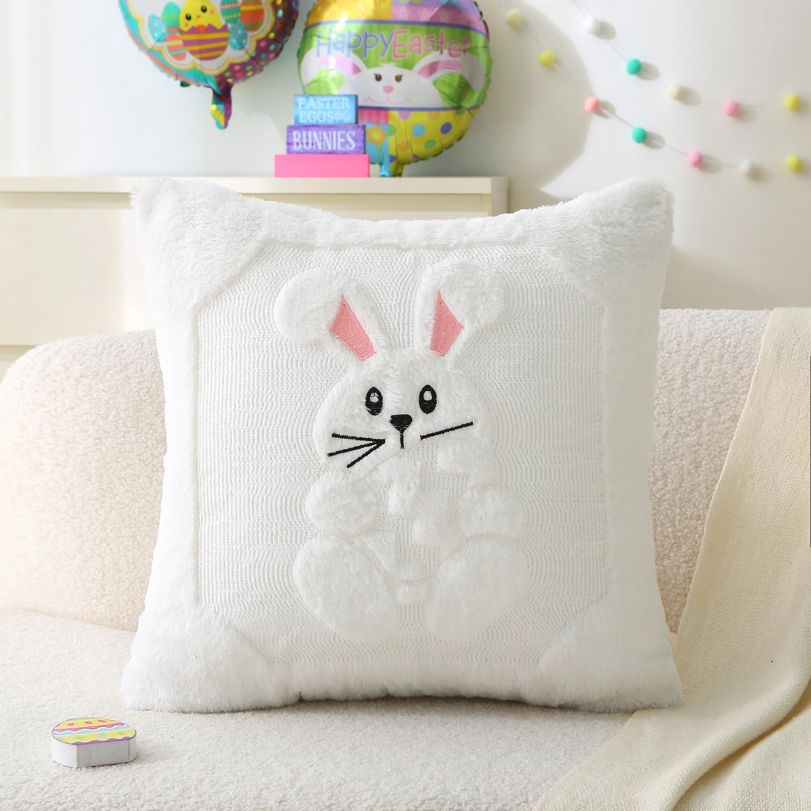 Set of 2 Easter Pillow Covers 18x18 Bunny Egg Plush Throw Pillow Cases