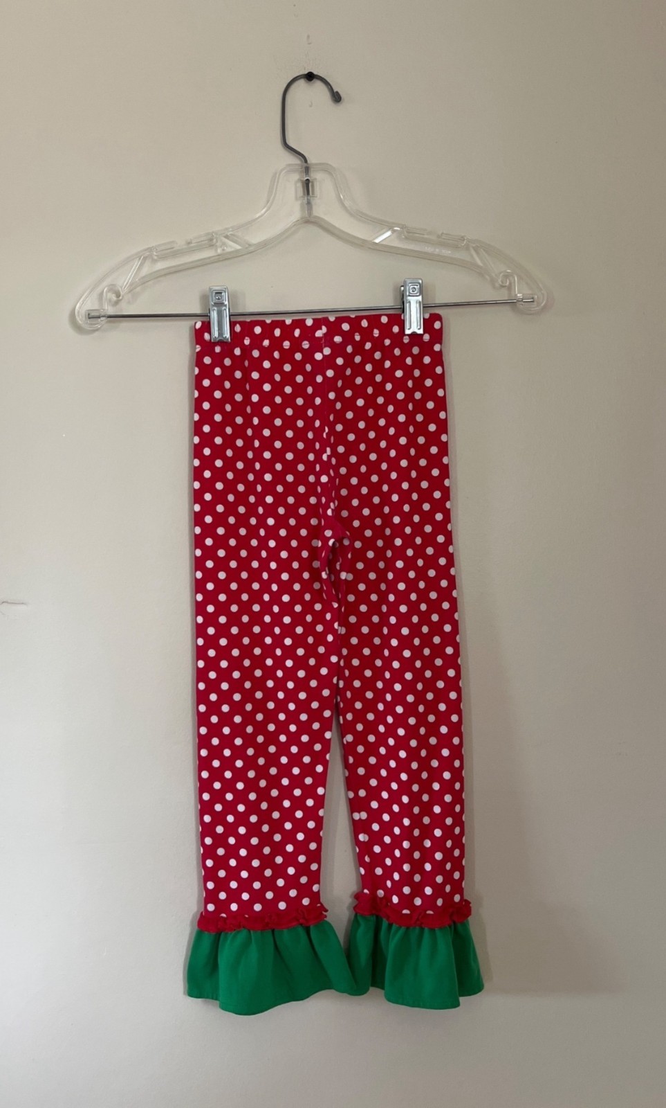 Rare Editions Girls Size 6 Red Pants Polka Dotted Ruffles Christmas Elastic