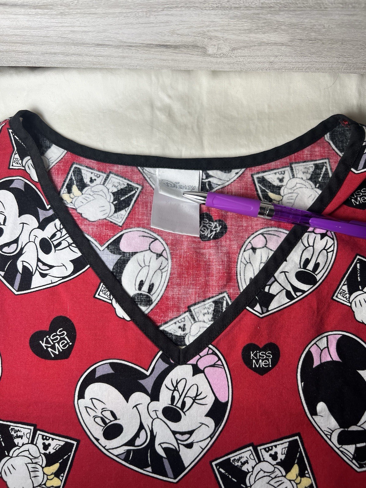 как выглядит Disney Scrub Top Mickey Minnie Mouse Love Hearts Themed Women s Size XL фото