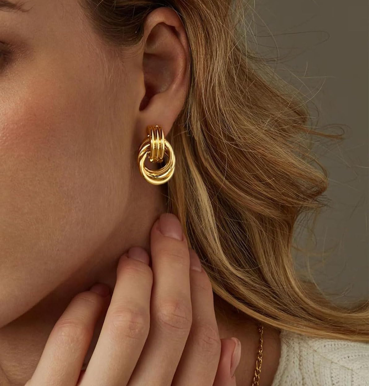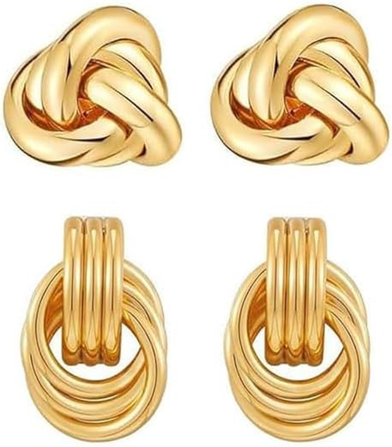 как выглядит Chunky Gold Knot Earrings Geometric Drop Dangle Earrings Long Twisted Earrings S фото