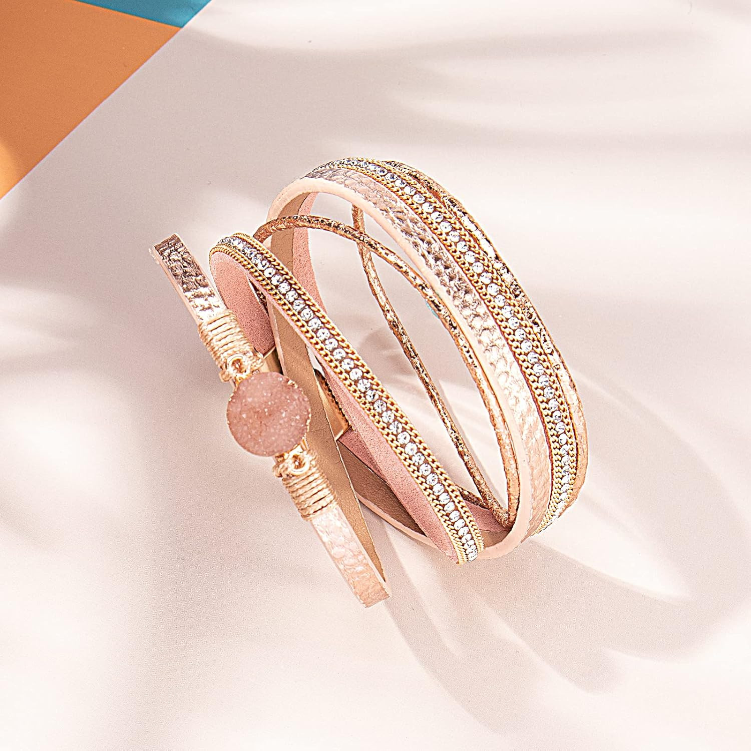 Boho Wrap Bracelets Leather Cuff Bracelet Bohemian Jewelry Resin Stone Leather N
