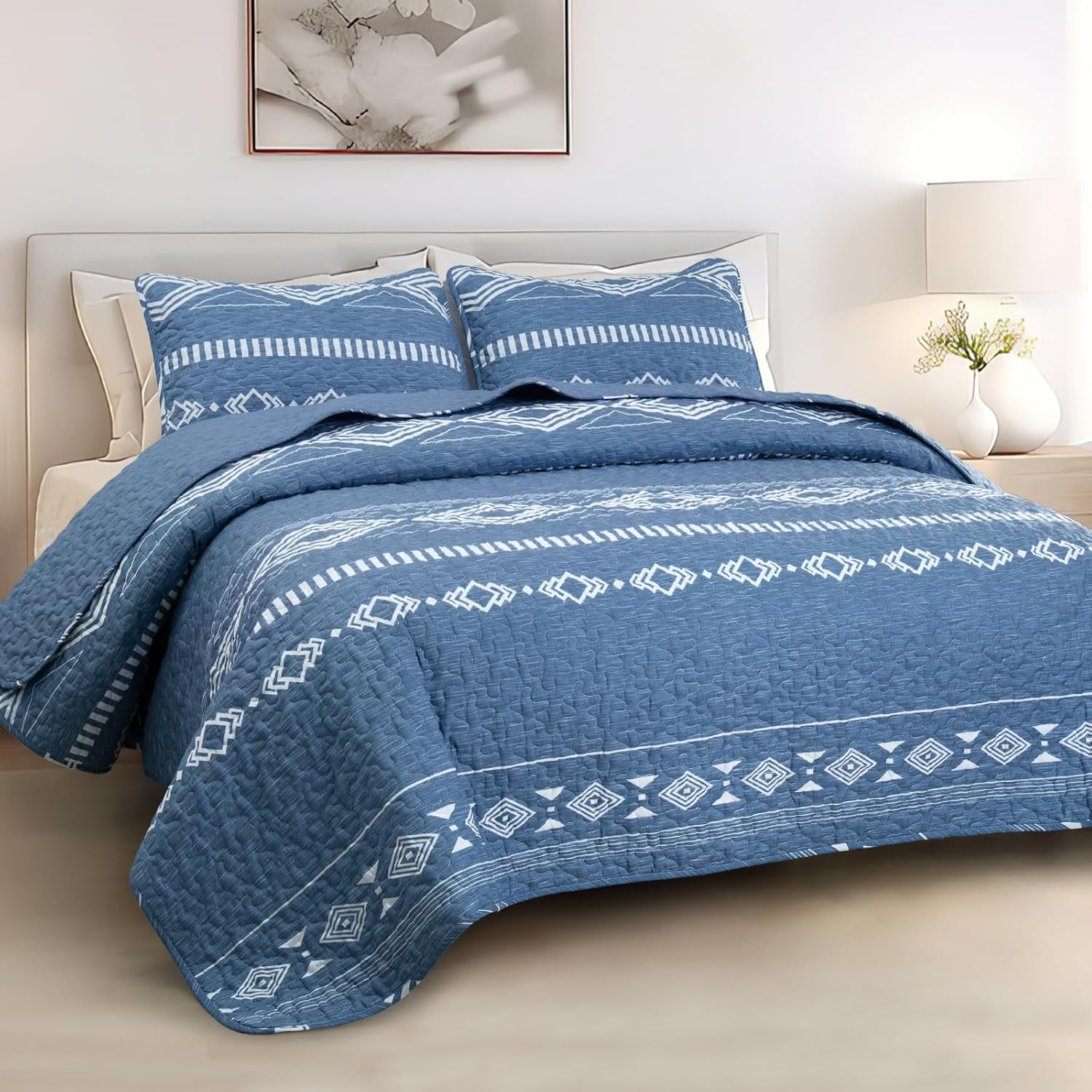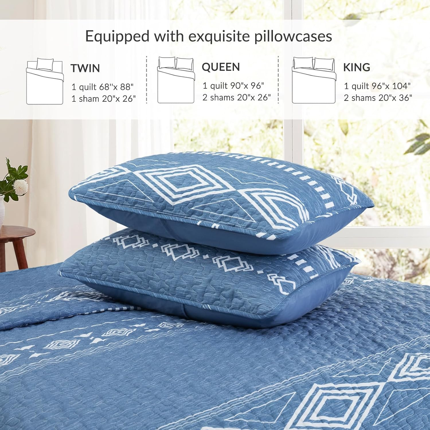 Full Queen Size Quilt Set - Reversible Blue Quilts Queen Size with 2 Pillow Sham