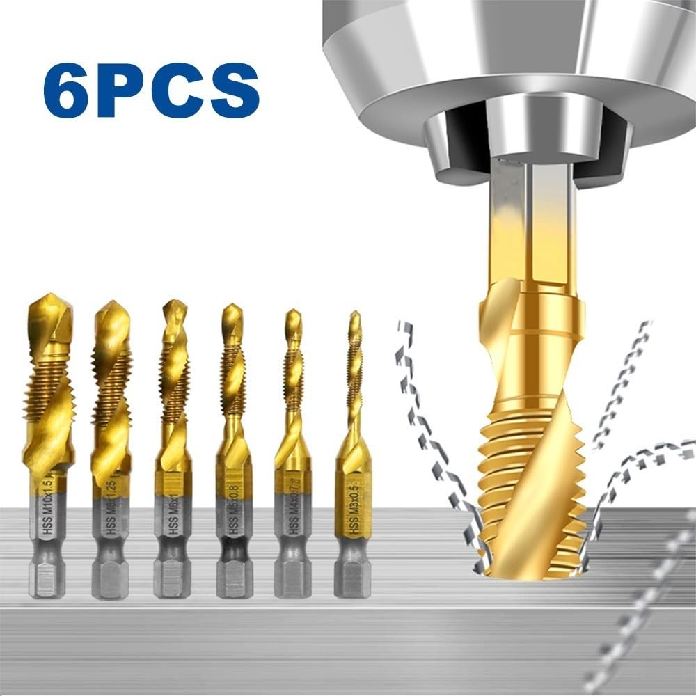 6 PCS Combination Drill and Tap Set, Professional HSS Titanium Thread 6pcs