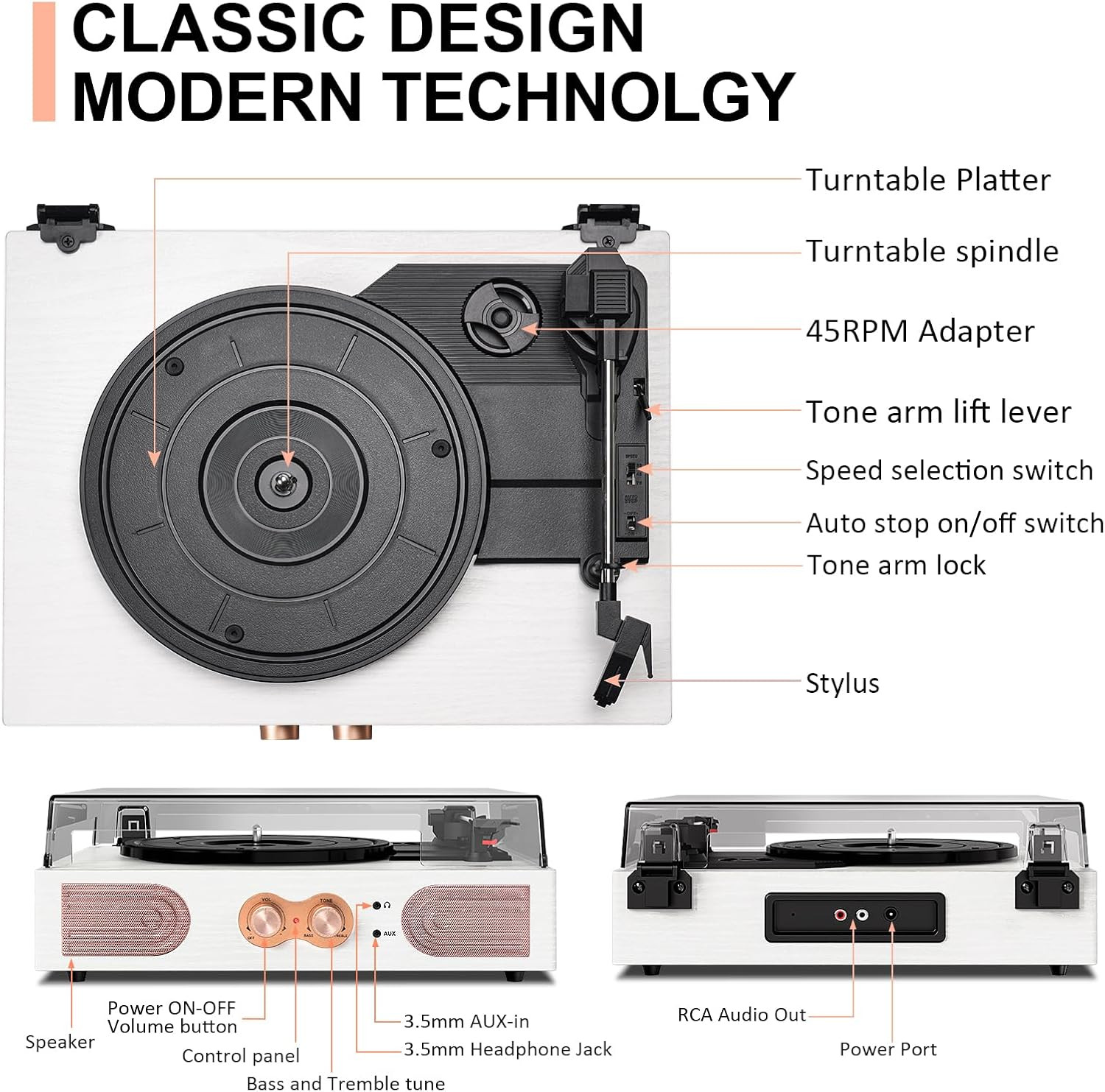 Special Feature: Adjustable Speed, Built In Speaker, Treble & Bass Control
