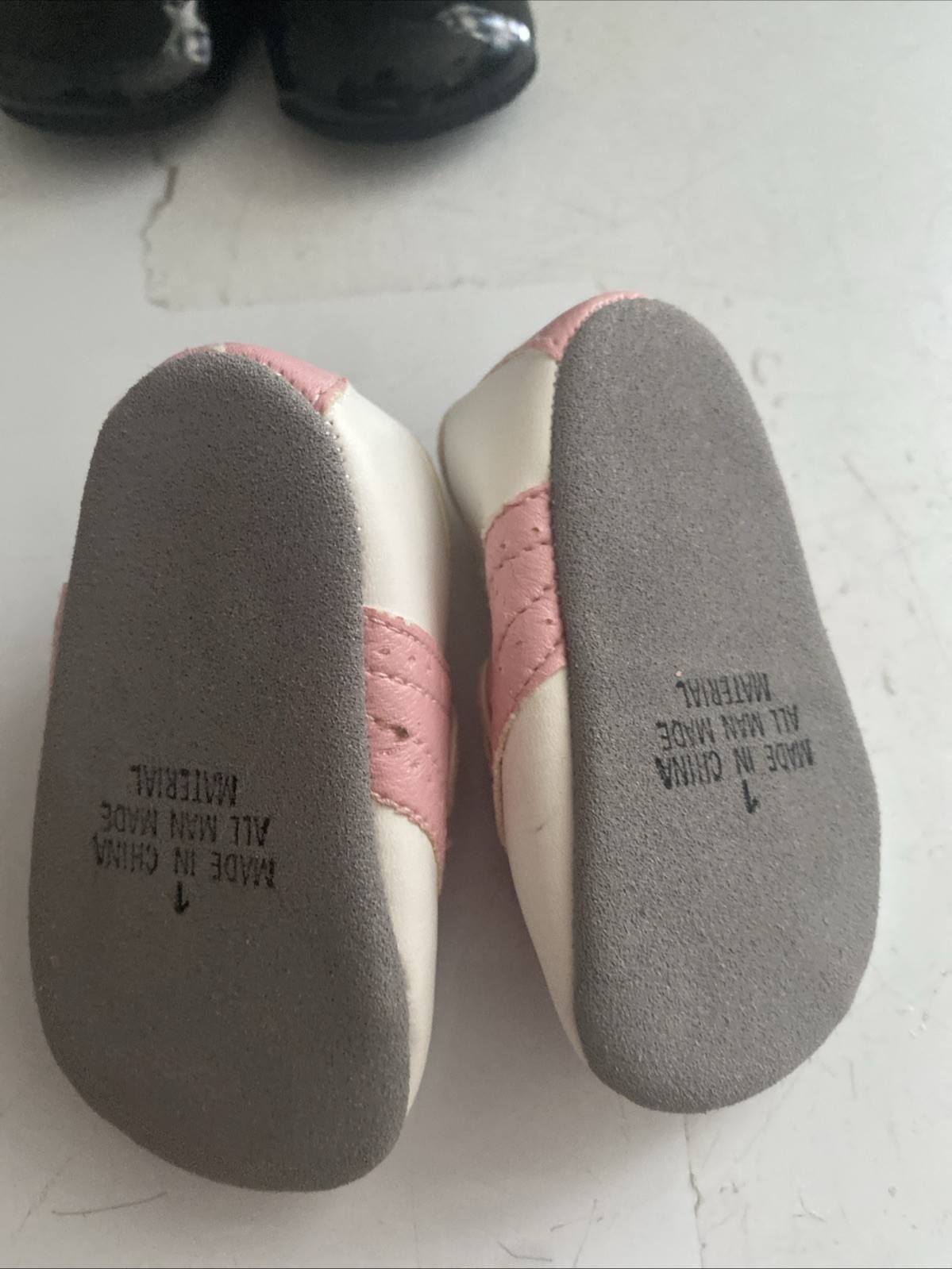 как выглядит Lot of 2 Baby Girl Shoes: Black Patent and Pink/White Saddle - Size 1 фото