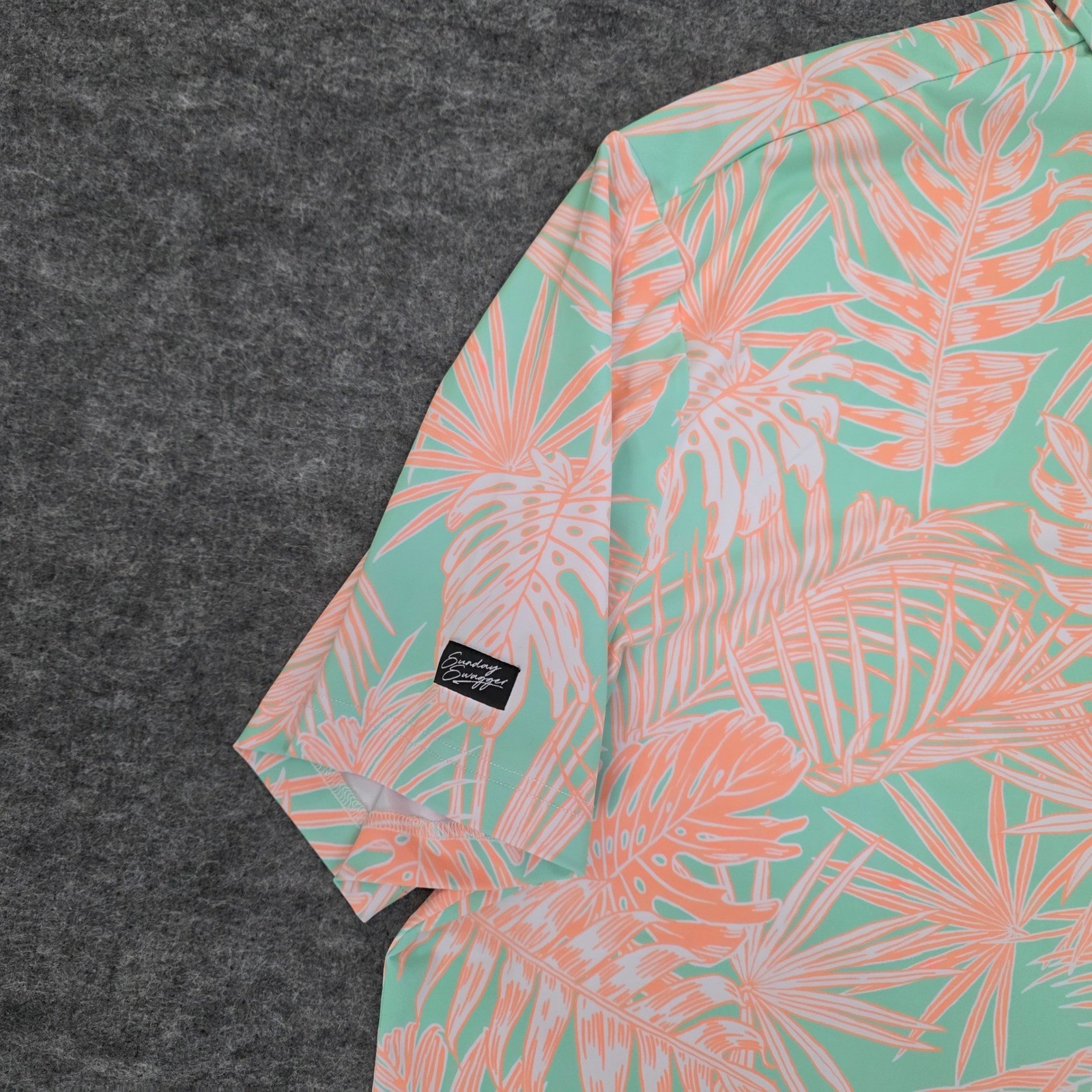 NWT Sunday Swagger Polo Shirt Mens 3XL Mint Green Peach Tropical Palm Leaf Golf
