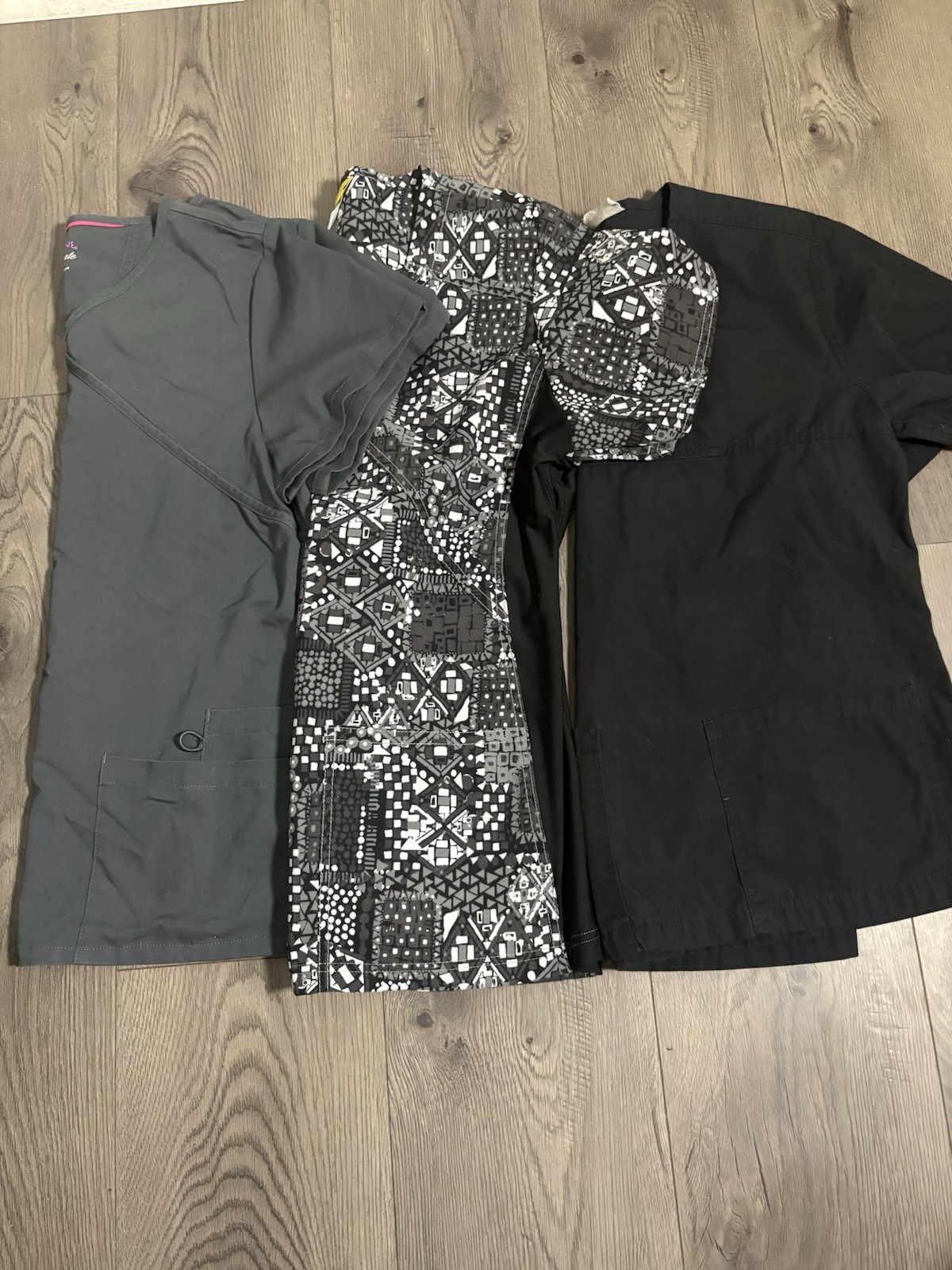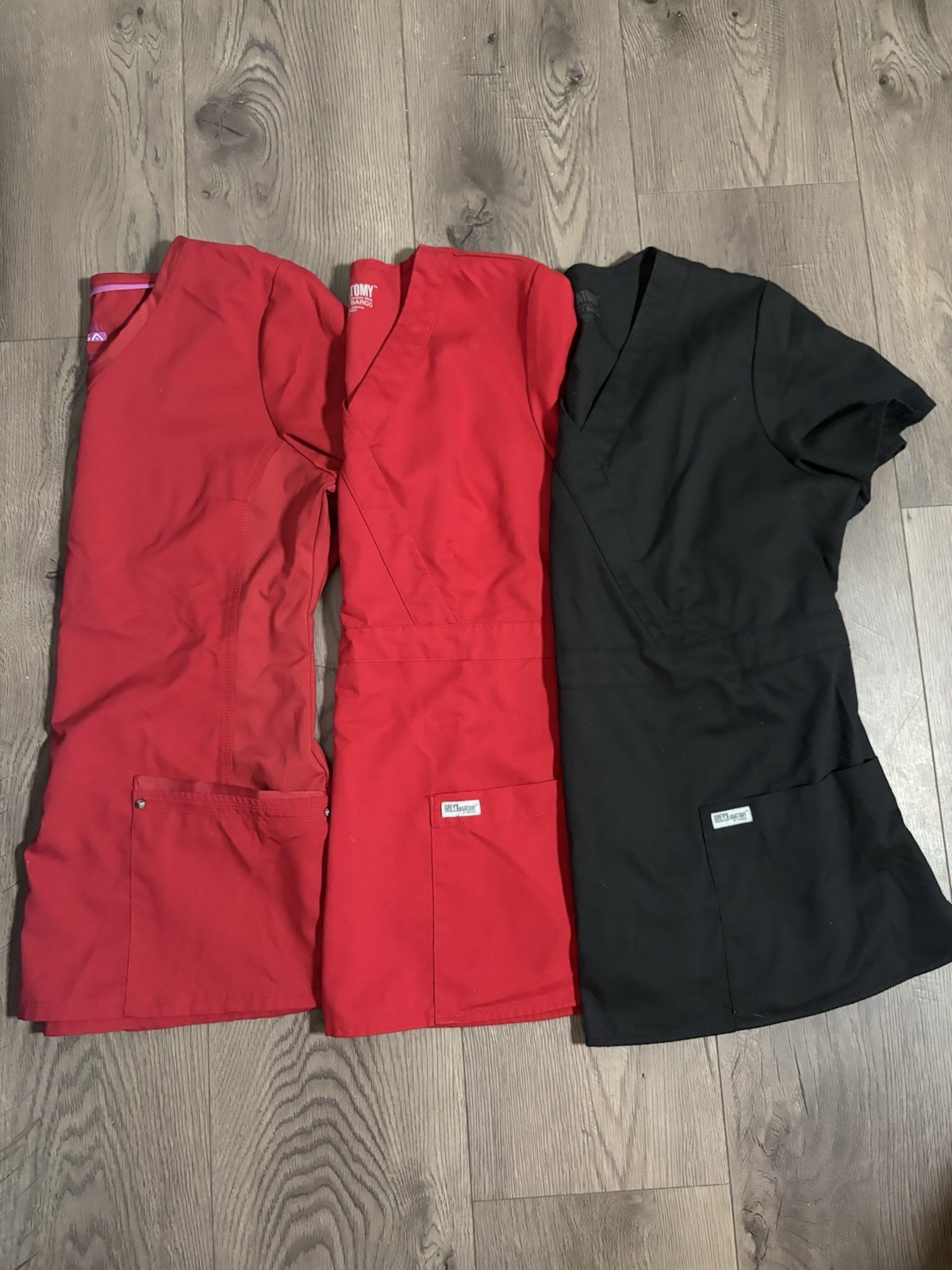 Lot Of 6 Women s Scrub Tops Black, Red, Grey Medical Nursing