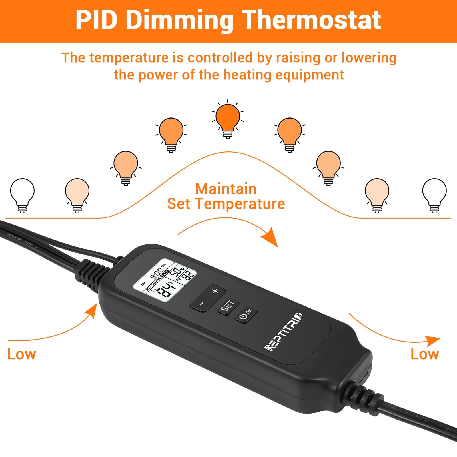 New Reptile Dimming Thermostat Adjustable Day and Night Temperature, Thermostat