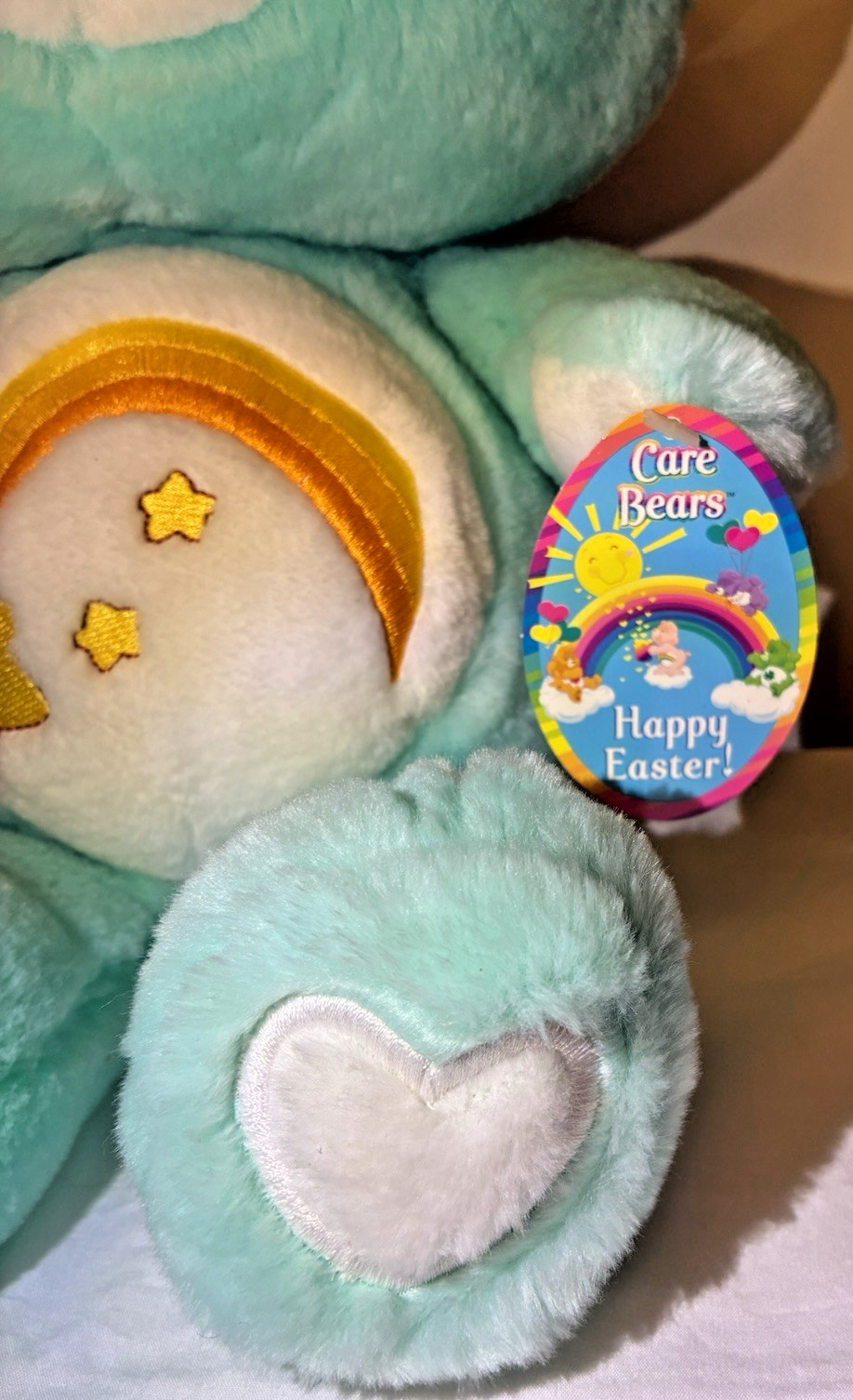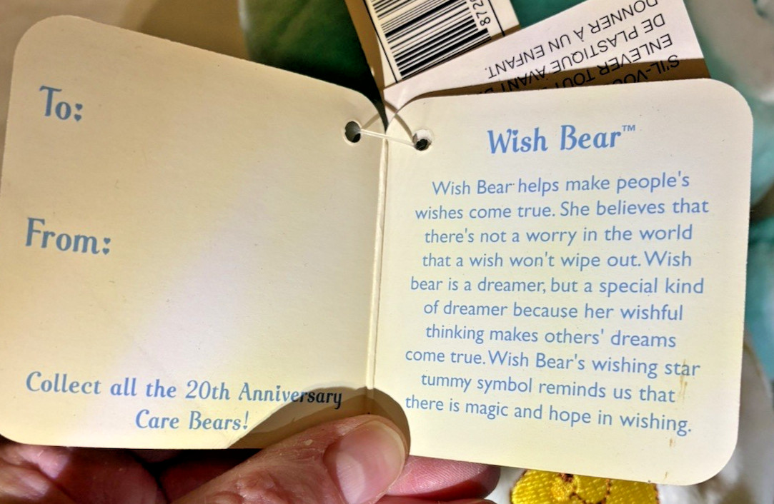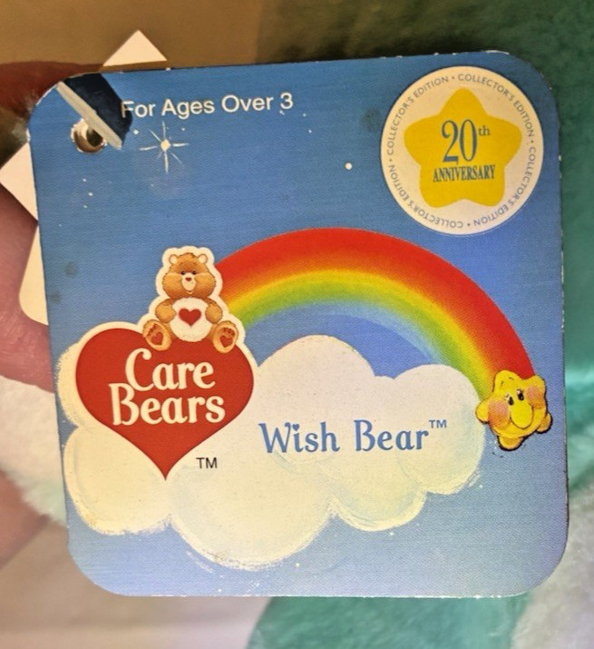 2002 Care Bear Wish Bear Happy Easter 20th Anniv. Pink Ear White Heart Feet RARE