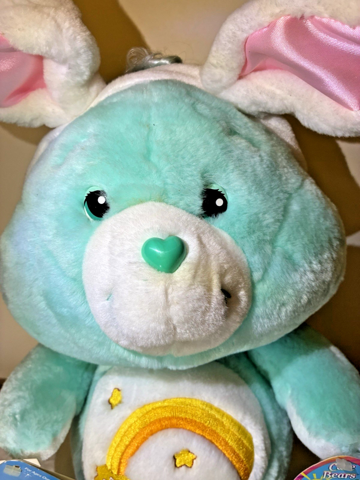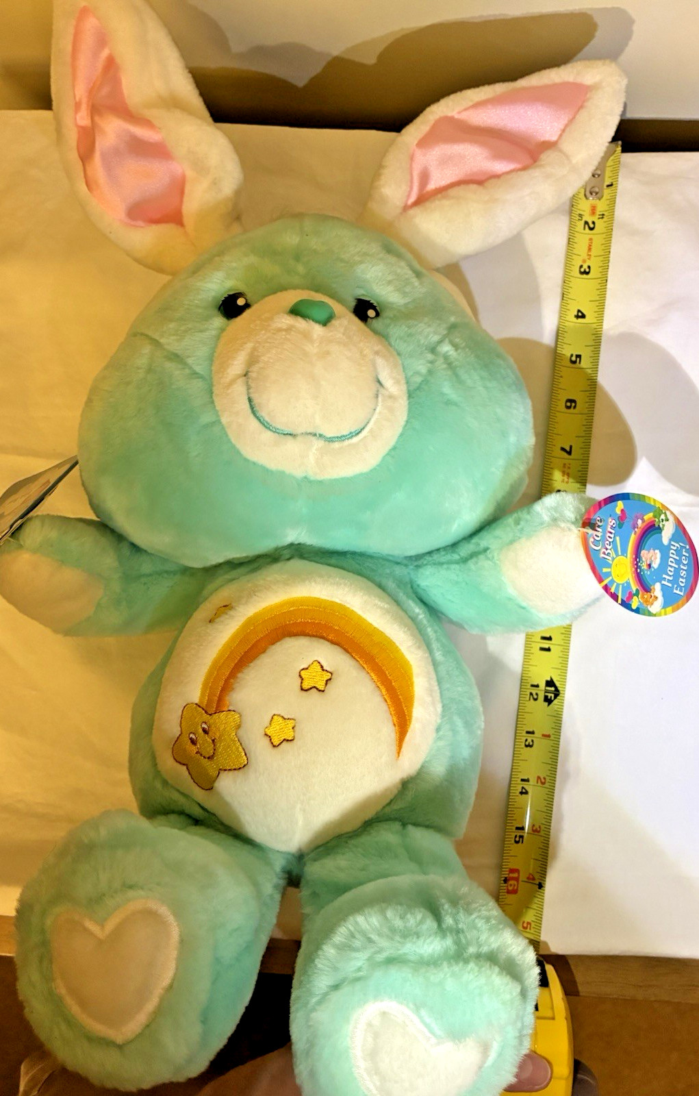 • 2002 Care Bear Wish Bear Happy Easter 20th Anniv. Pink Ear White Heart Feet RARE