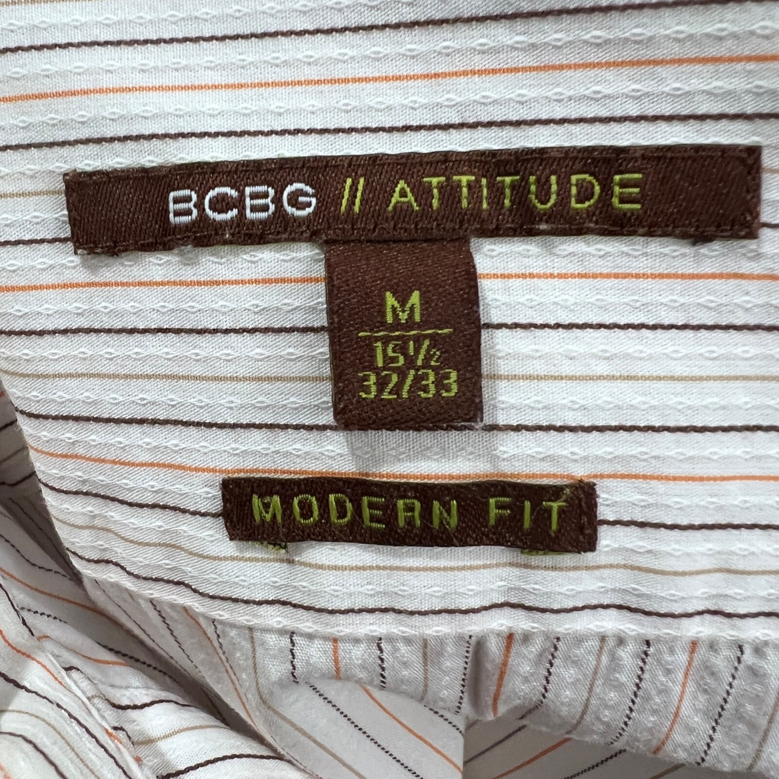 VTG BCBG Attitude Dress Shirt Men Medium 15.5 32/33 Slim Stripe Stitch Textured