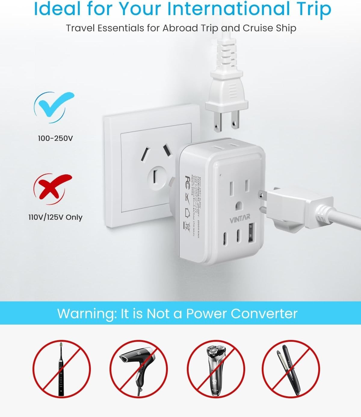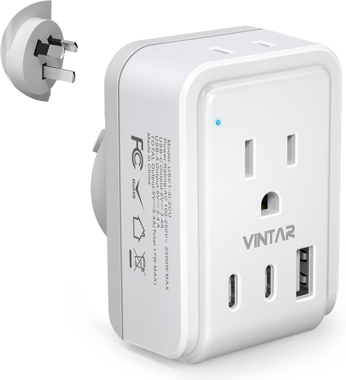 Australia New Zealand Power Adapter, Australia Plug Adapter with 2 American O...