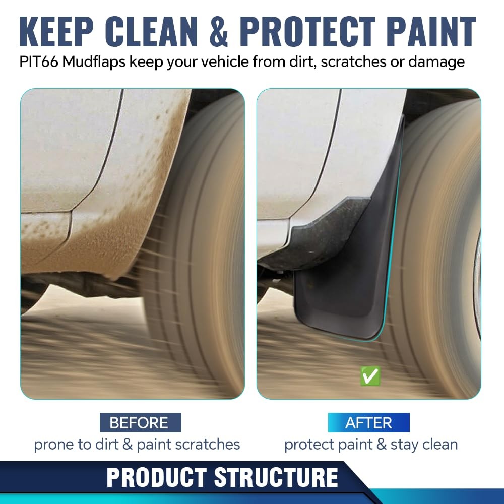 4PCs Heavy Duty Molded Mud Flaps for F150 2015-2018 Front Rear No Fender Flares