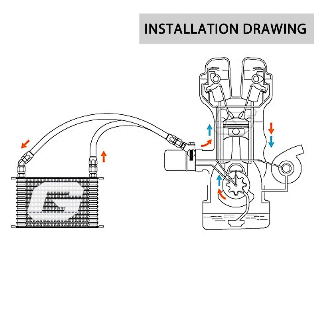 • Universal 10 Row 10AN Oil Filter Relocation Kit Oil Cooler Kit Aluminum