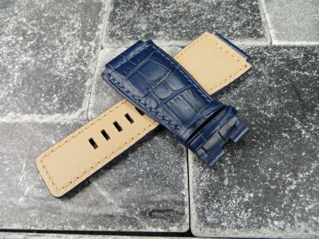 24mm Bell Ross Leather Strap A Navy Blue Watch Band for BR-01 BR-03 BR Blue x1