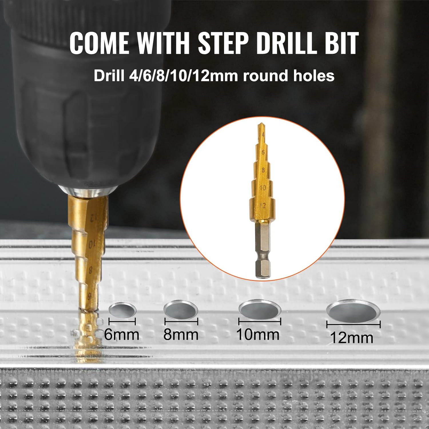 Included Components: 1 x Cutting Round Accessories, 1 x Plastic Handle, 1 x Step Drill