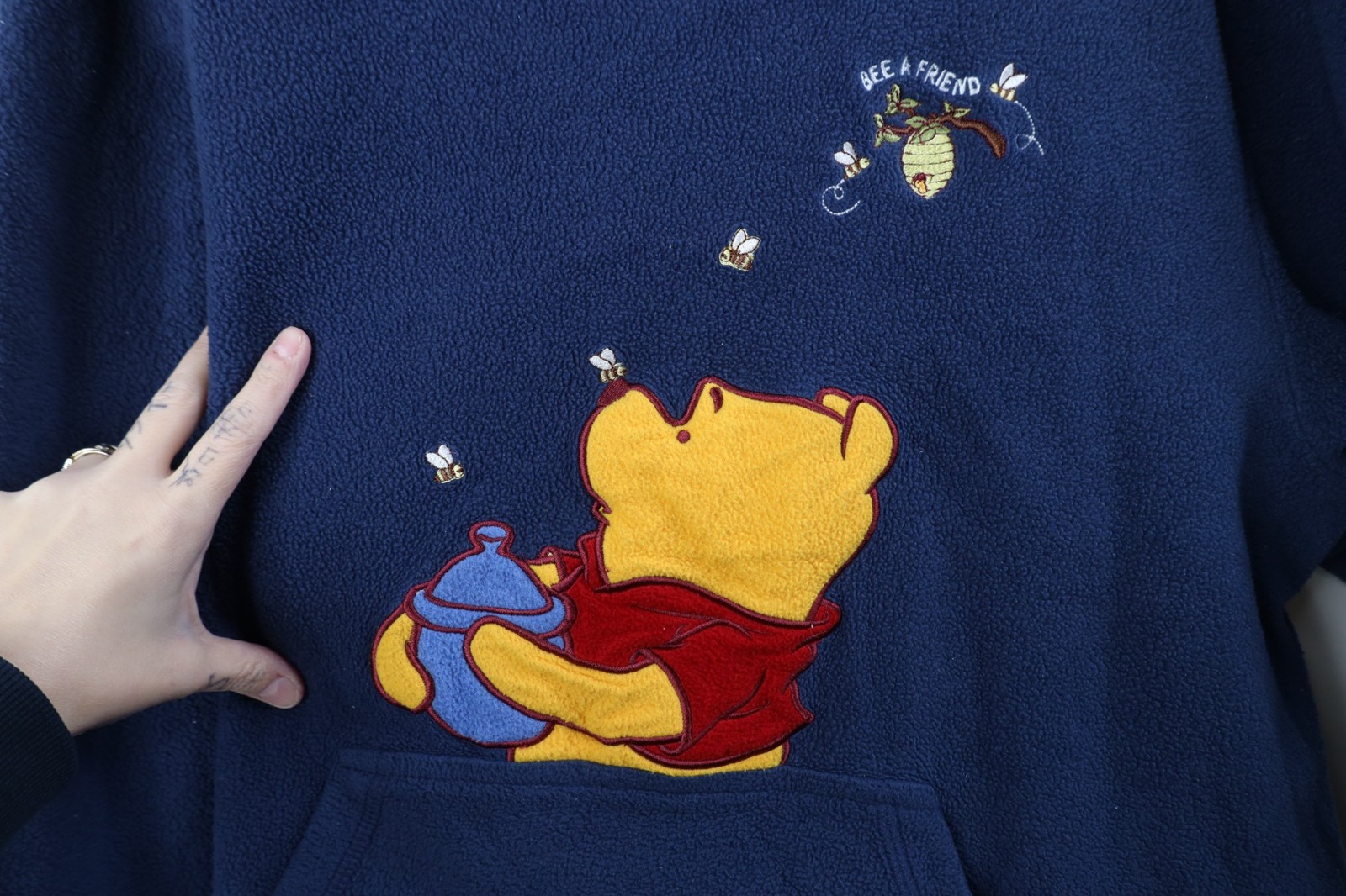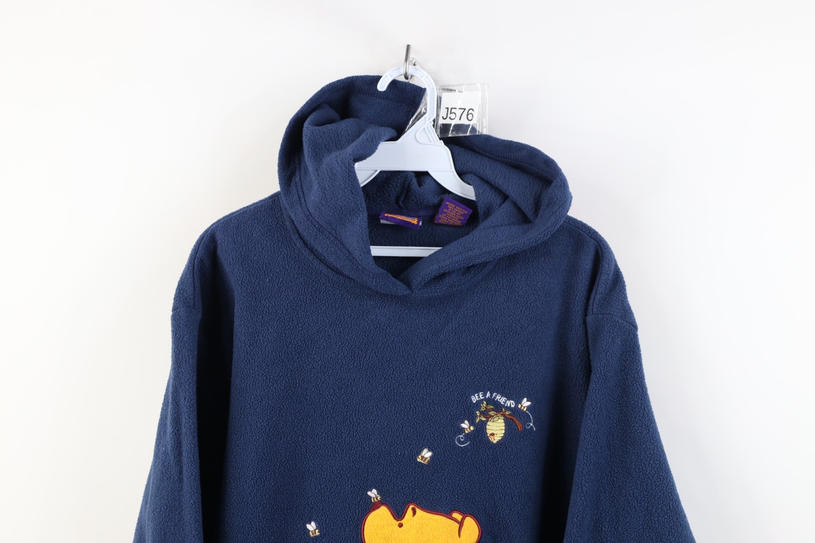 Vintage 90s Disney Womens Large Winnie the Pooh Fleece Hoodie Sweatshirt Blue