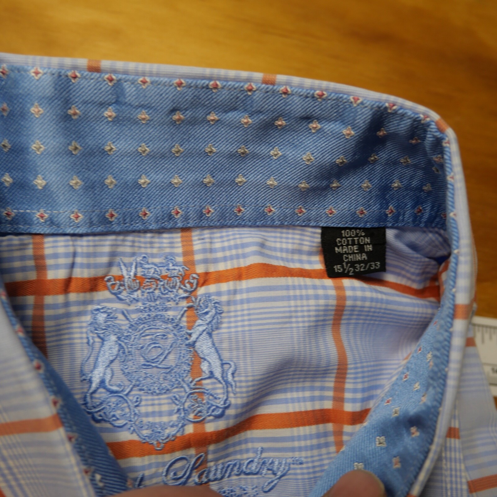 как выглядит English Laundry Mens Size 15.5-32/33 Blue Check Cotton Flip Cuffs Dress Shirt фото
