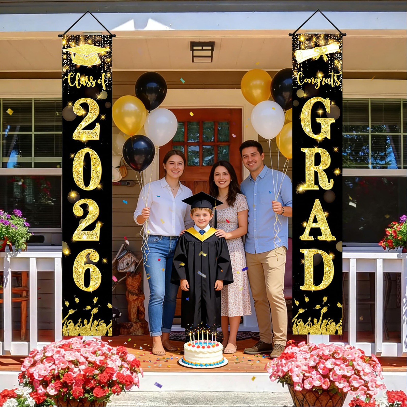 Class of 2026 Black Gold Graduation Porch Banner Set Outdoor Welcome Party Signs