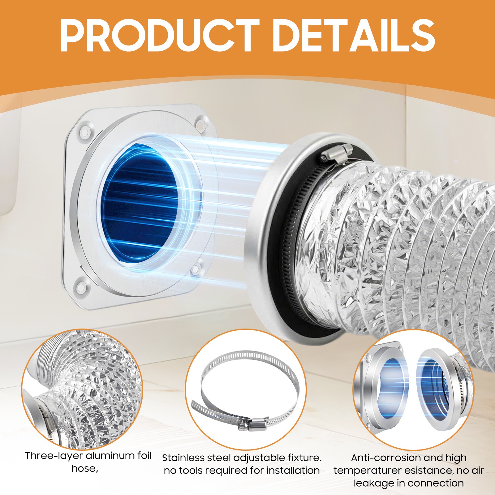 ALORAIR 4 Magnetic Dryer Vent Connector Kit w/Aluminum Telescoping Foil Duct