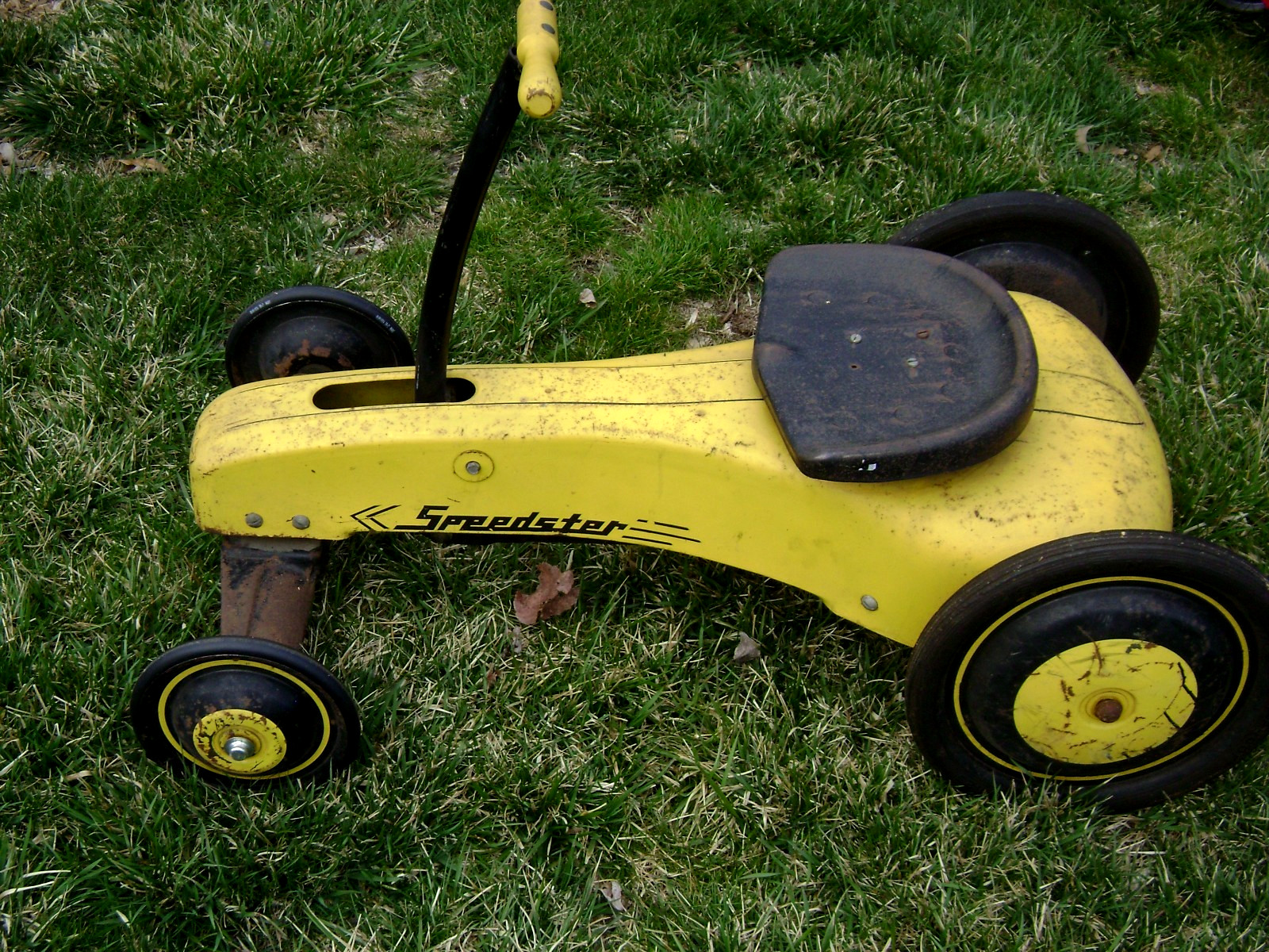 как выглядит VINTAGE SPEEDSTER Irish Mail Push Pull Kid Metal Ride On Toy Car фото