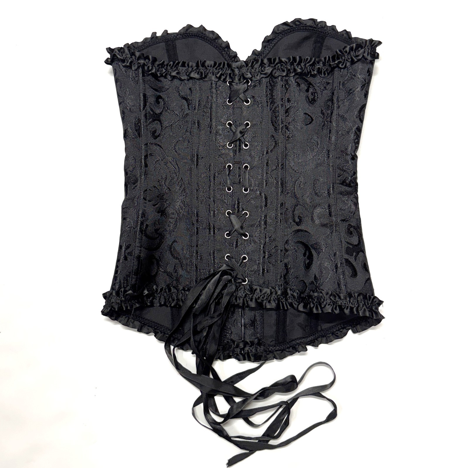 Jacquard Strapless Corset, Size XS, Unbranded, Black Overbust Lace-Up Ribbons