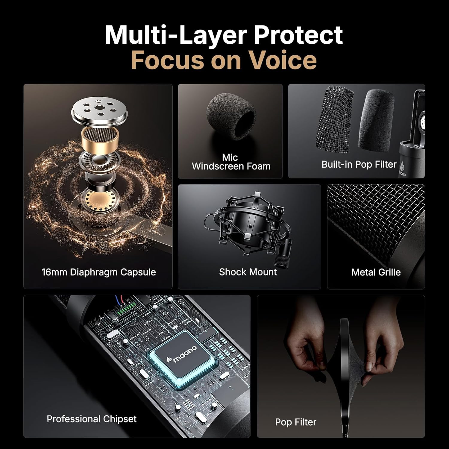 Built-In Media: Condenser Mic + Adjustable Scissor Arm Stand + Metal Shock Mount
