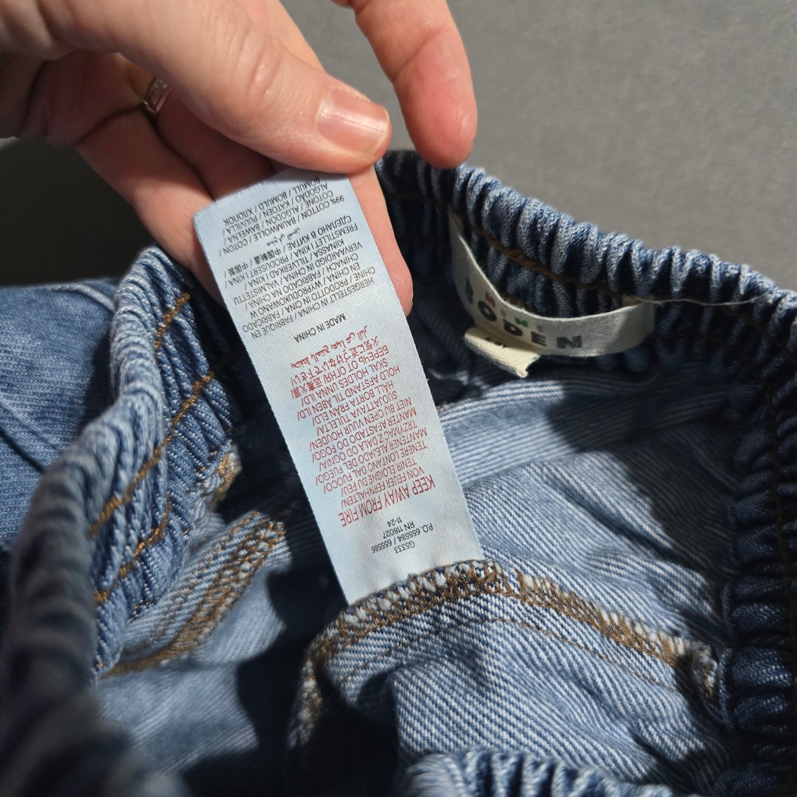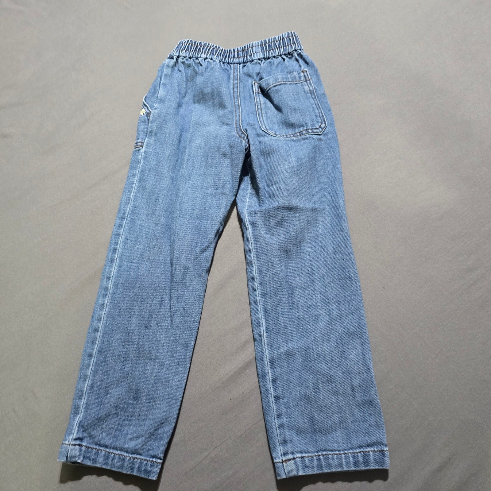 Mini Boden Jeans Kids 5-6Y Blue Daisy Embroidered Elastic Waist Denim Pants