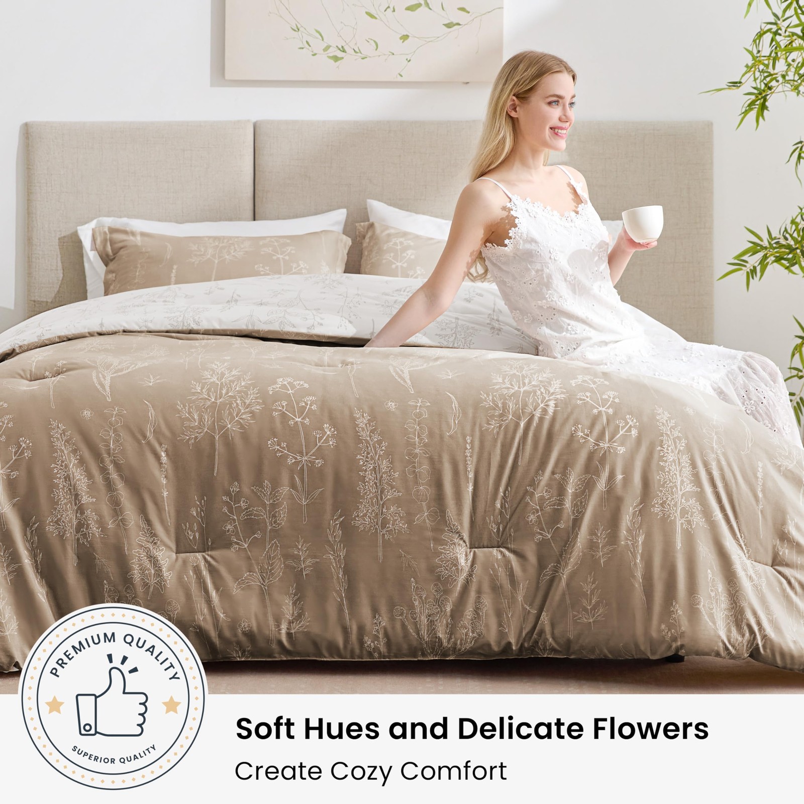 Light Taupe Comforter Set Queen - Queen Size Comforter Set, 3 Pieces Cute Floral