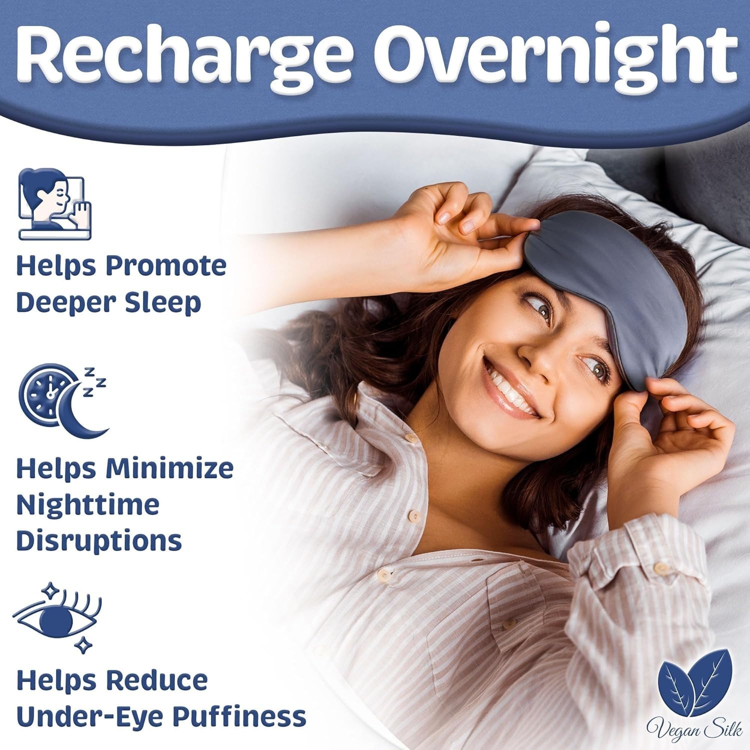Cooling Light Blocking Eye Mask with Adjustable Strap - Navy Gray Bamboo Viscose