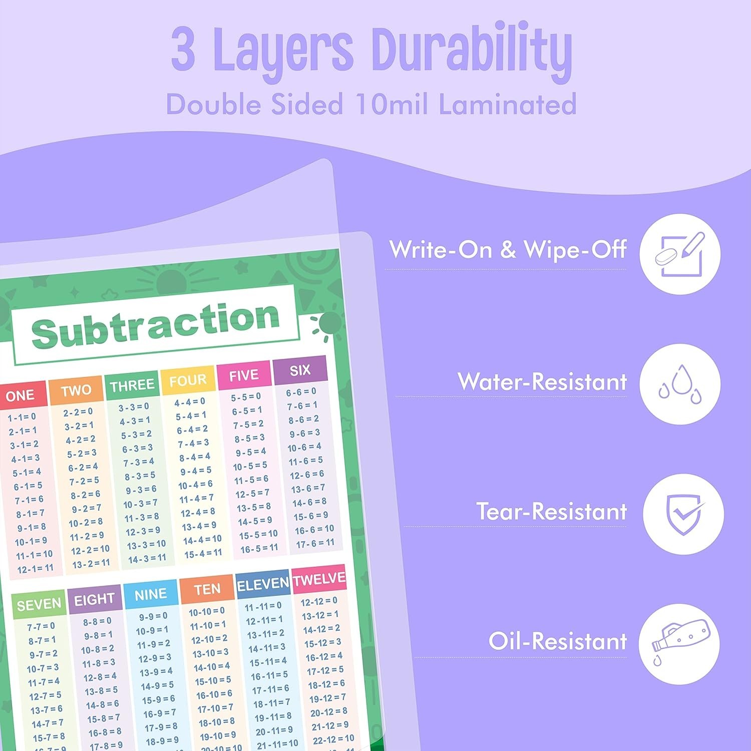 Laminated Math Posters for Kids - Addition and Subtraction Learning Tools 2-...