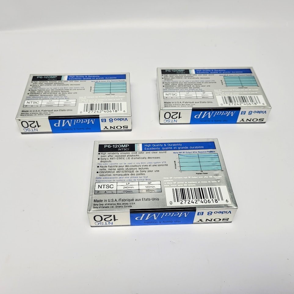 Lot of 3 Sony 8mm MP 120 Video Cassette NTSC Hi-Packing Metal MP Tape NEW